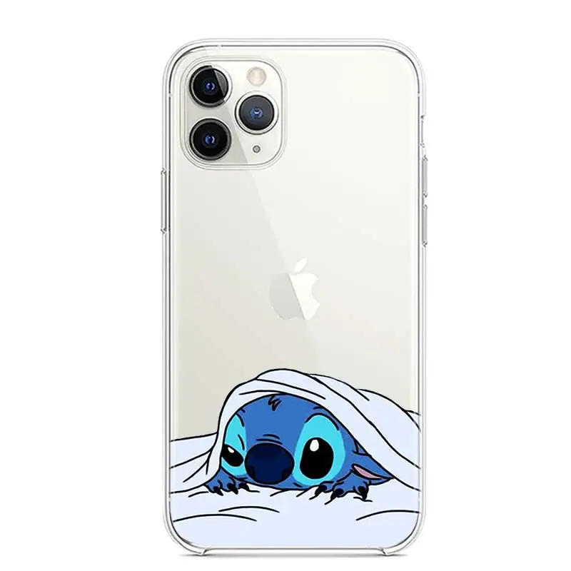 Супер Симпатичный Стич для Apple iPhone 13 12 11 mini 8 7 6S 6 XS XR X 5 5S SE 2020 Pro Max Plus Прозрачный чехол для телефона