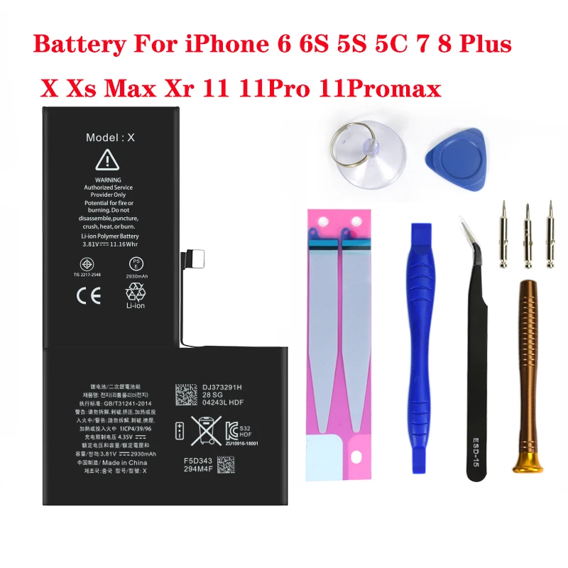 Аккумулятор для телефона высокой емкости для iphone 5S 5 6S 6 7 8 Plus X SE Xr Xs Max, замена оригинальной литиевой батареи с бесплатным набором инструментов