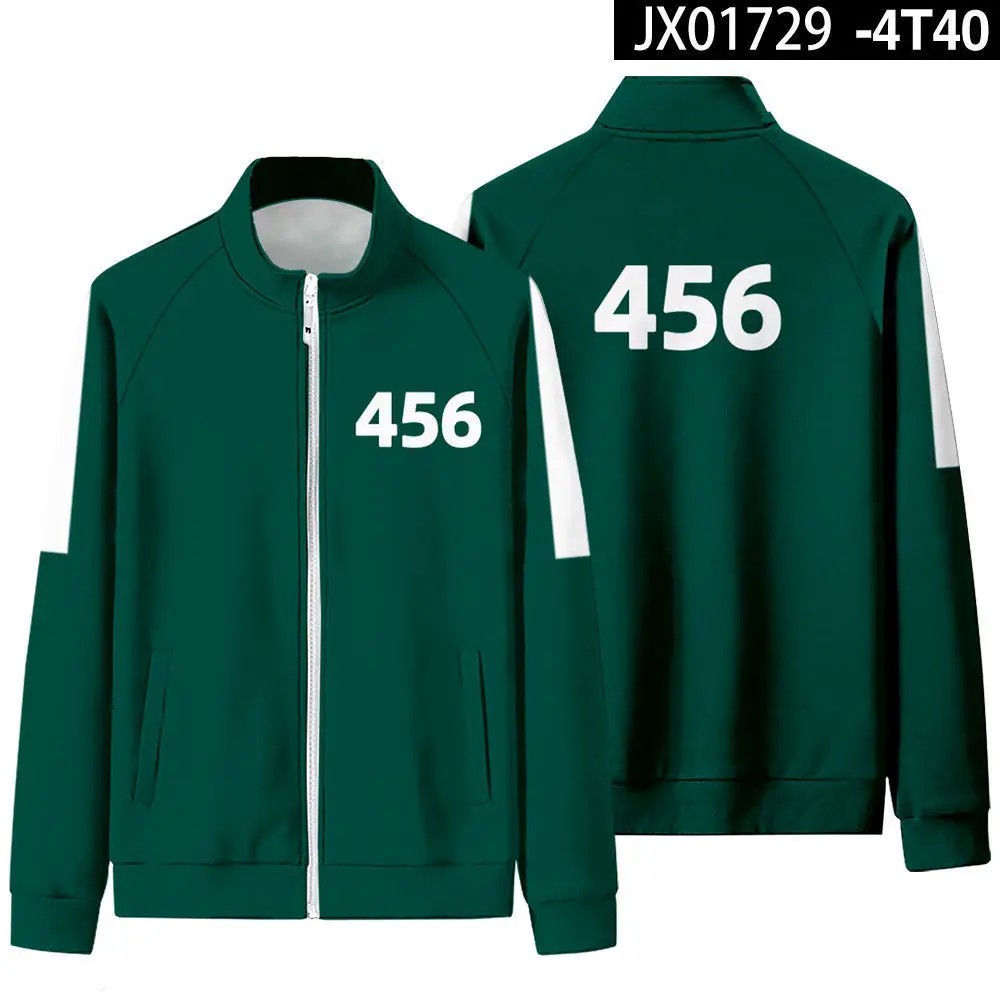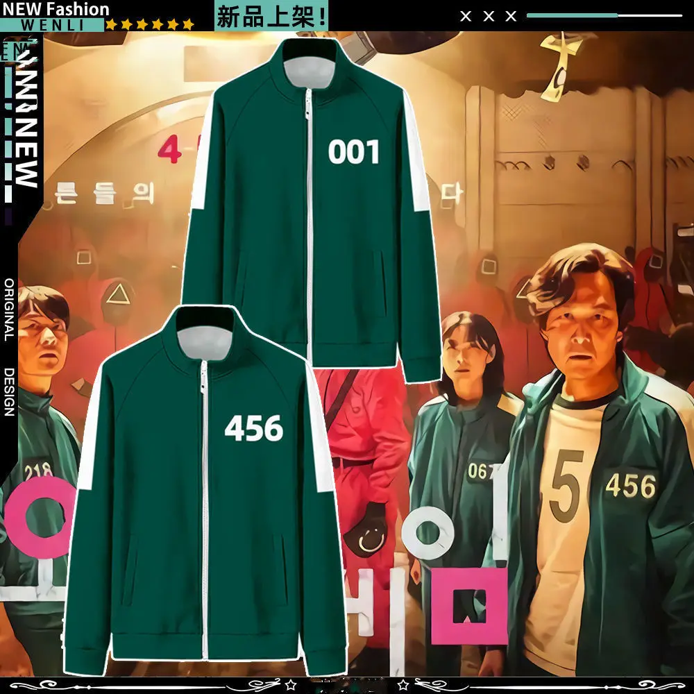 Костюм для косплея кальмар для мужчин и женщин, кардиган на молнии с принтом и карманами, комплект одежды для игр кальмар, свитшот, 456