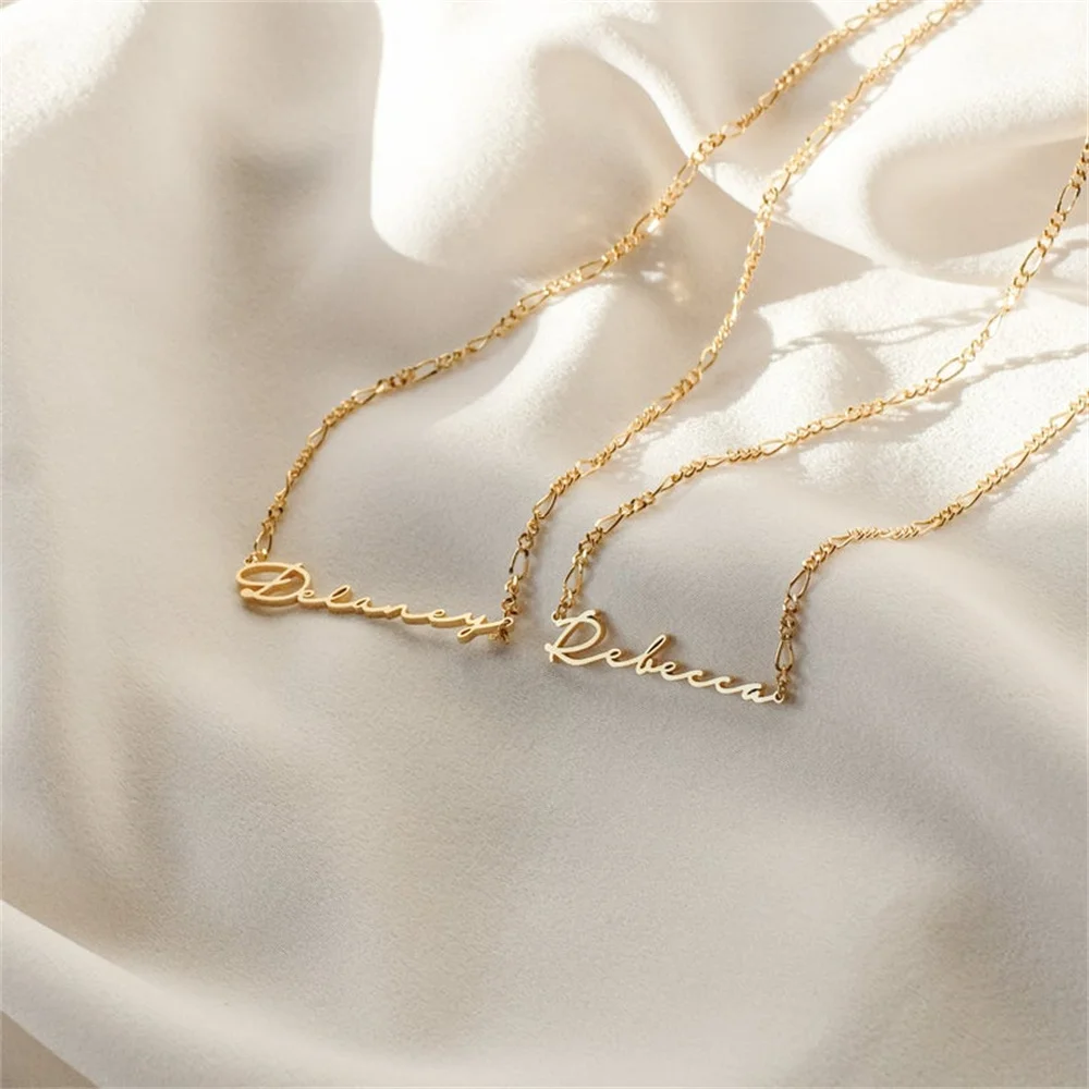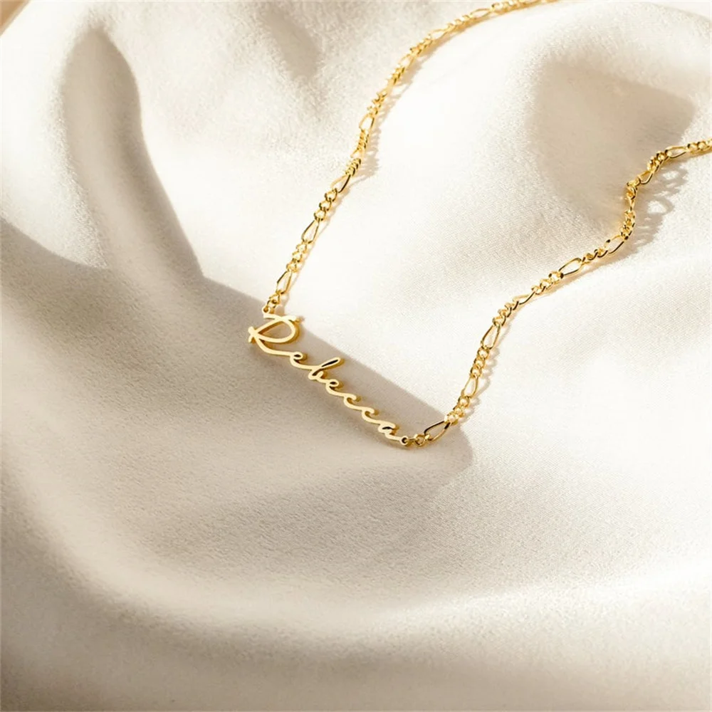 Ожерелье женское из нержавеющей стали под заказ, ожерелье с кулоном-цепочкой Фигаро золотистого и серебристого цвета, Подарочная бижутерия