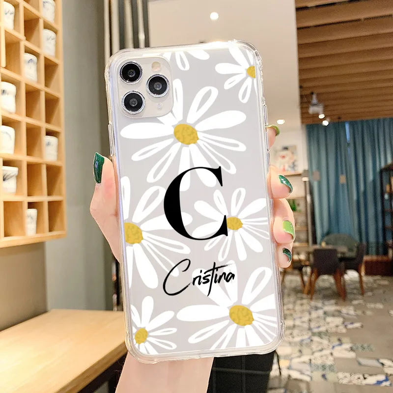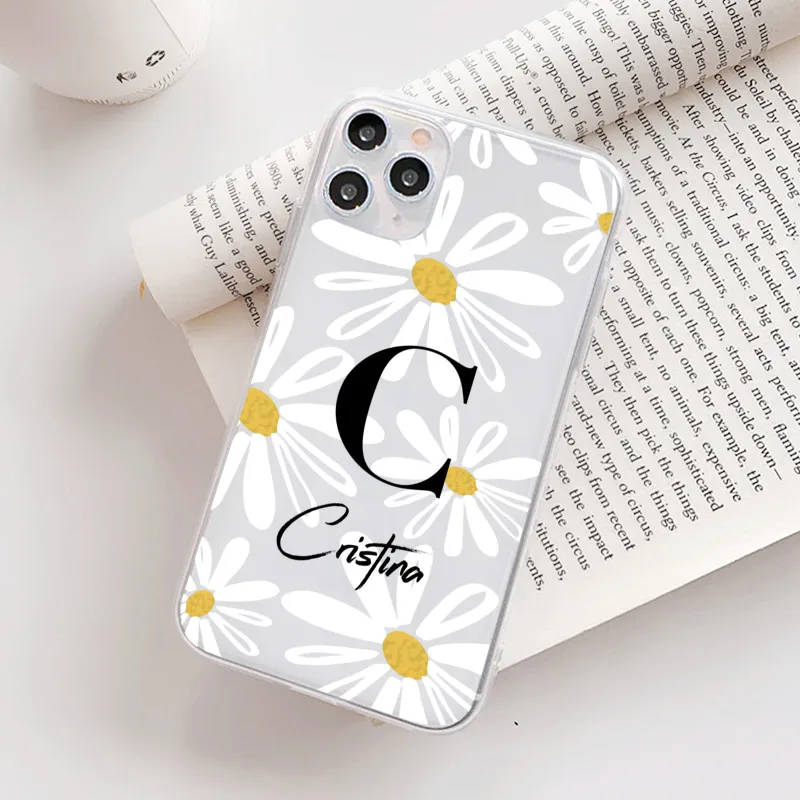 Чехол с именем на заказ для iPhone 13 Pro Max 8 Plus 11 SE 2020, силиконовый чехол с маргаритками и цветами для iPhone 12 Pro, чехол X XS XR 7