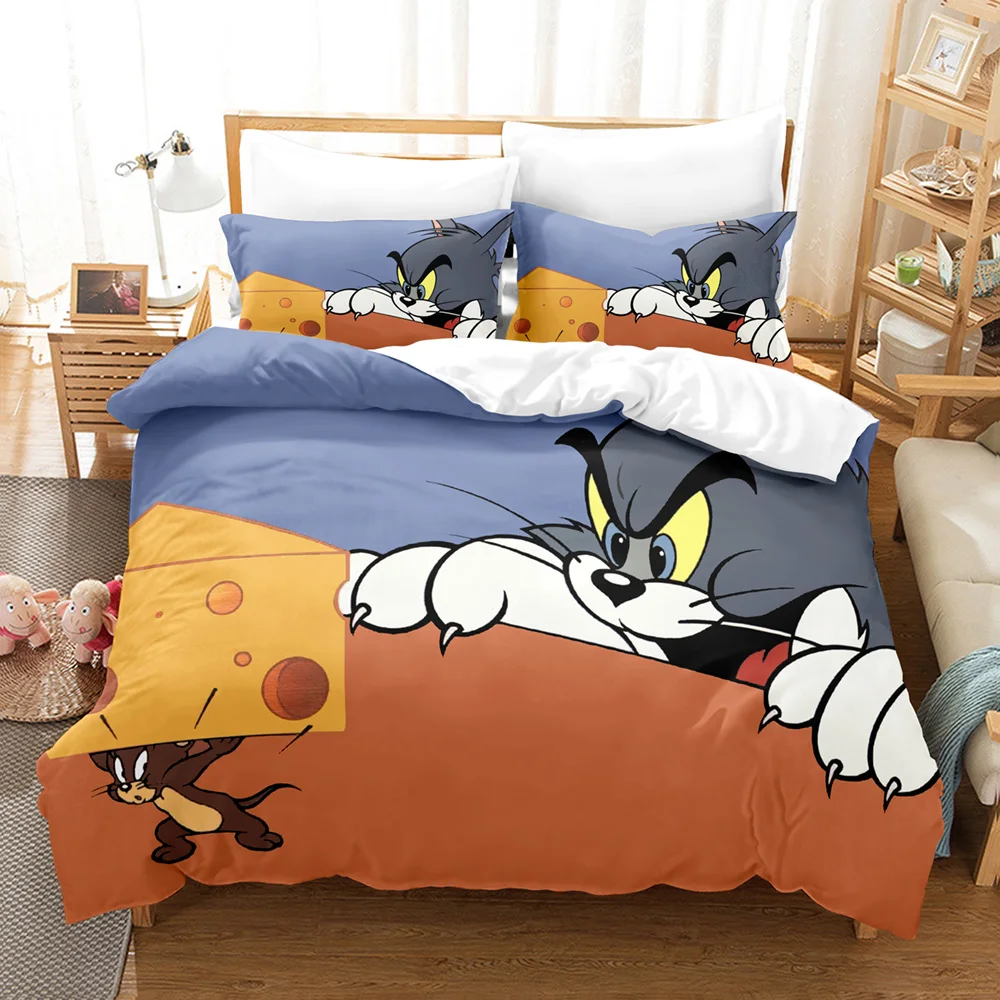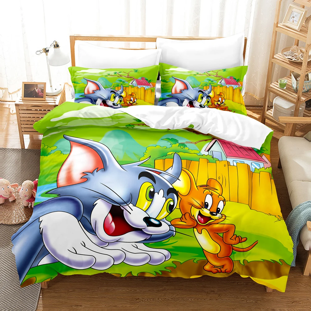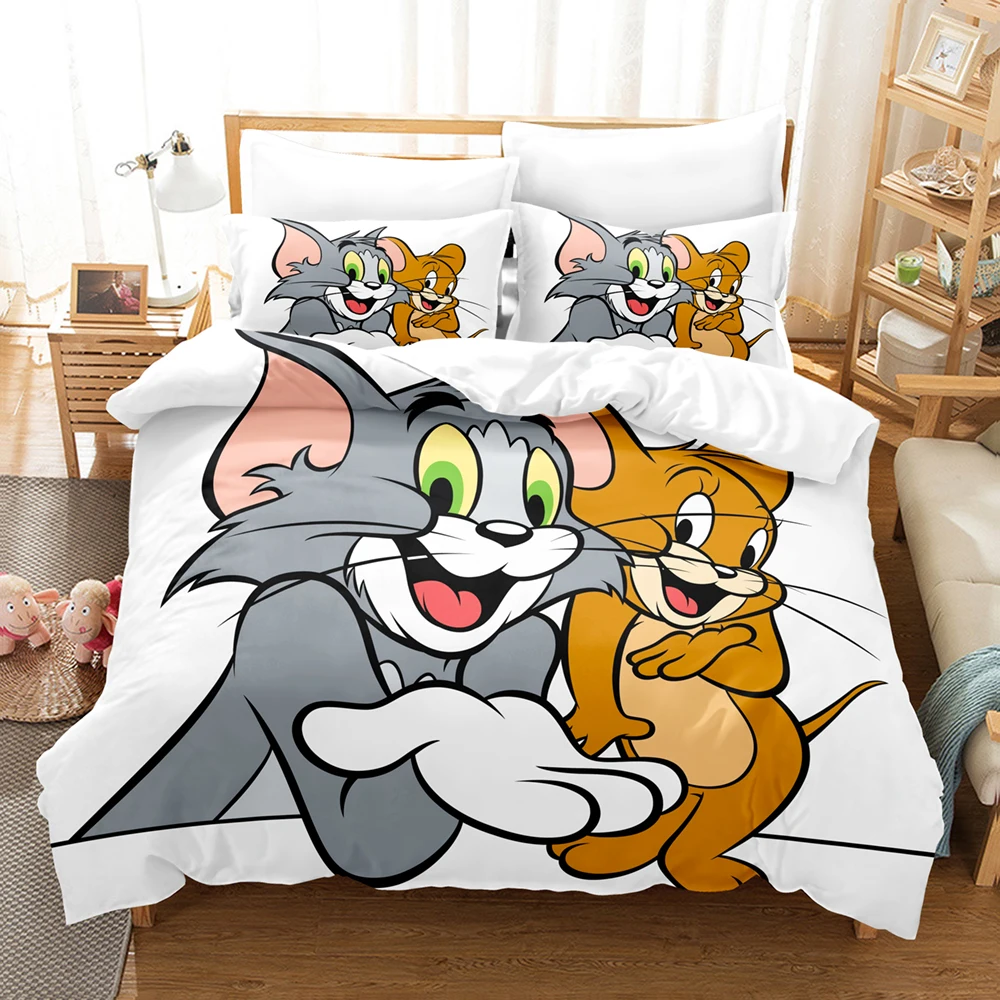 Комплект постельного белья с рисунком мышки Джерри, односпальный, двойной, полноразмерный, Королевский, с рисунком кота и Тома, Комплект постельного белья для детской спальни с объемным рисунком аниме 033