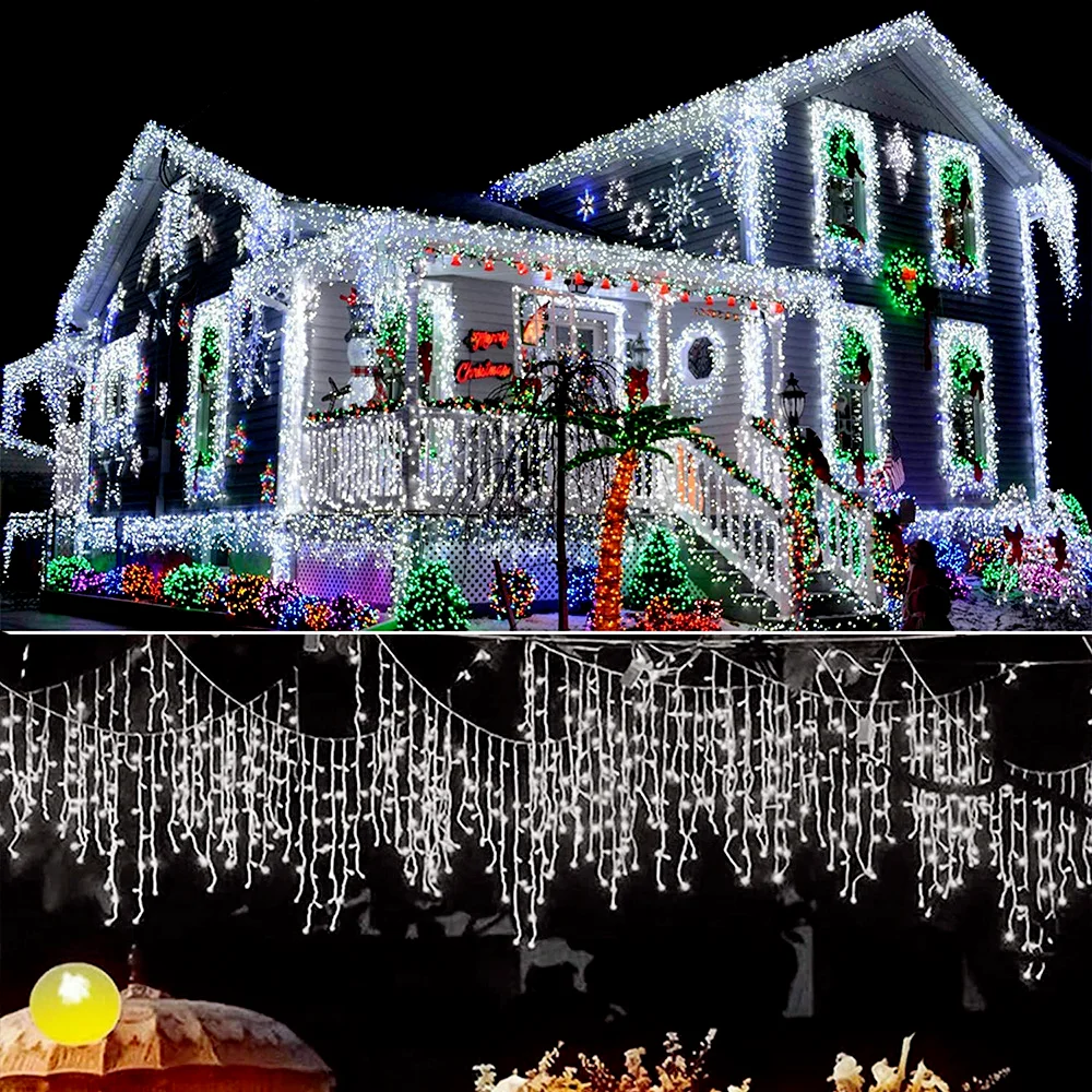 Уличная гирлянда на дом, рождественские украшения, гирлянда, светодиодная подсветка, штора, водопад, рождественское освещение, свисающая дорога
