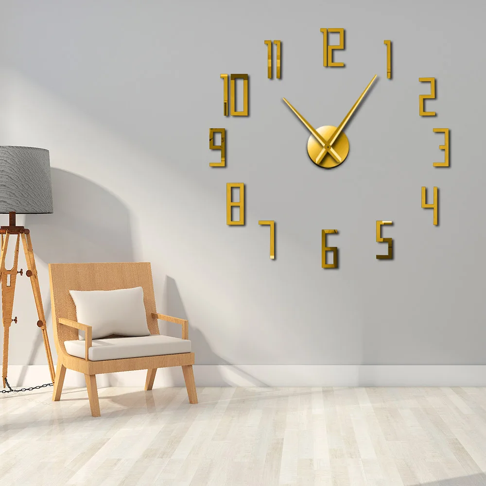 Настенные часы с большими цифрами, современный дизайн сделай сам, простые цифры, зеркальные наклейки, минималистичное искусство, для спальни, Настенный декор