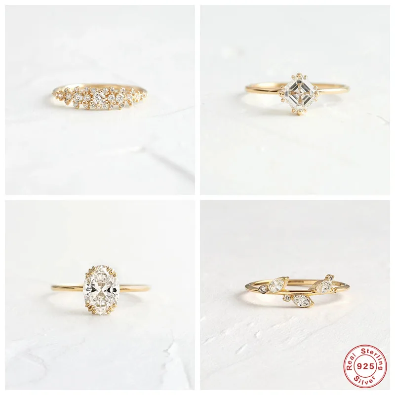 Кольца из стерлингового серебра 925 пробы для женщин Геометрические Квадратные овальные треугольные кольца с прозрачным кристаллом циркония богемные Свадебные ювелирные изделия подарок