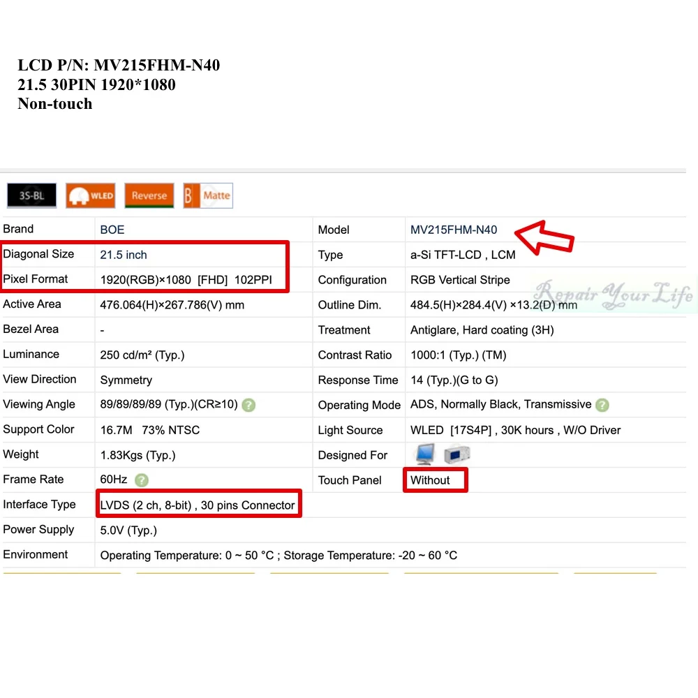 Compatible ModelsMV215FHM-N40 All-in-One LCD For Lenovo Ideacentre A340-22 22ICK 22AST 22ICB