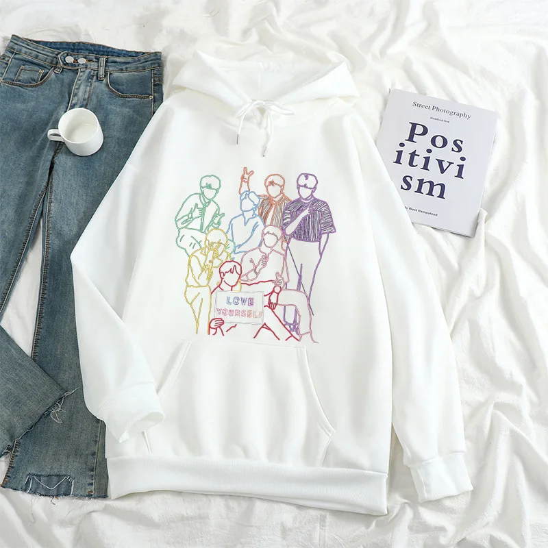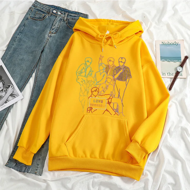 Свободный Повседневный пуловер Love Yourself Stick, зимняя Толстовка большого размера в стиле Харадзюку, спортивная одежда для женщин и мальчиков и девочек