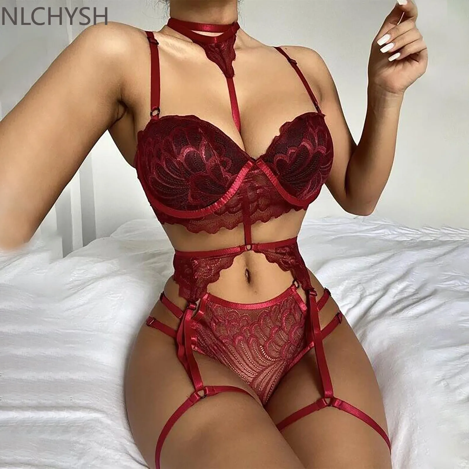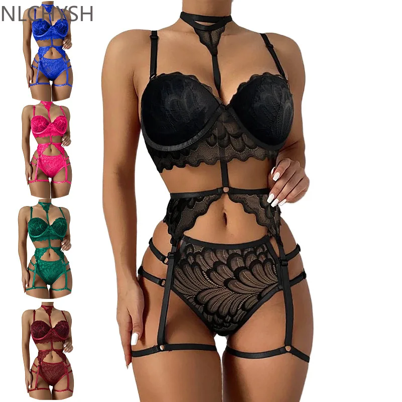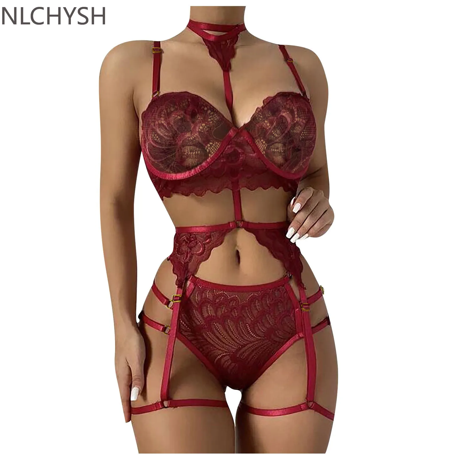 Комплект женского кружевного нижнего белья с подвязками, 3 шт., 2021