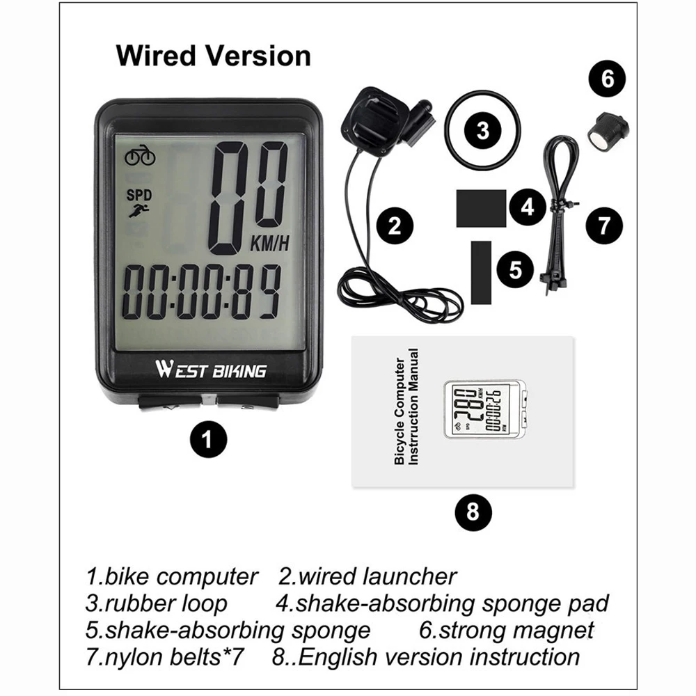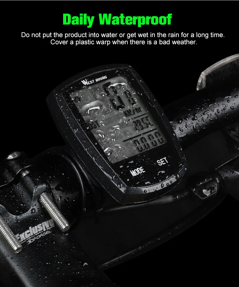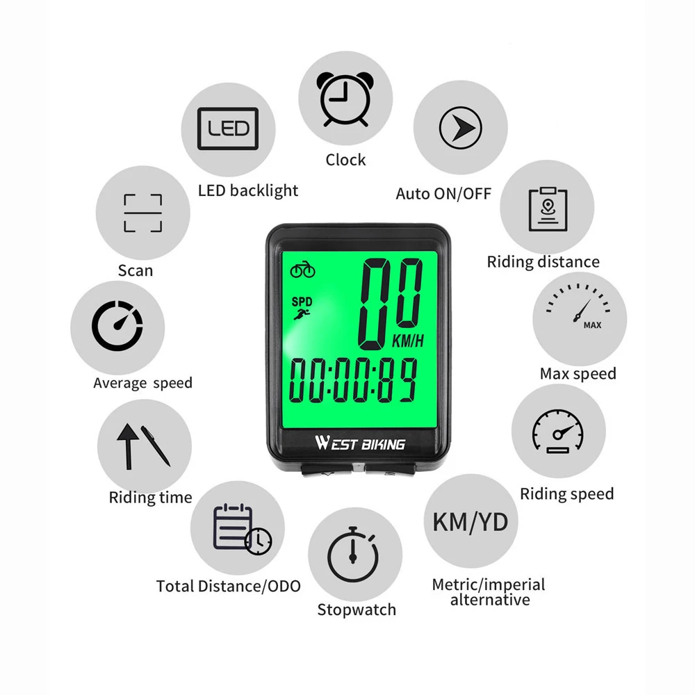 WEST BIKING водонепроницаемый велосипедный компьютер беспроводной проводной горный велосипед велосипедный одометр секундомер Спидометр велосипедные аксессуары