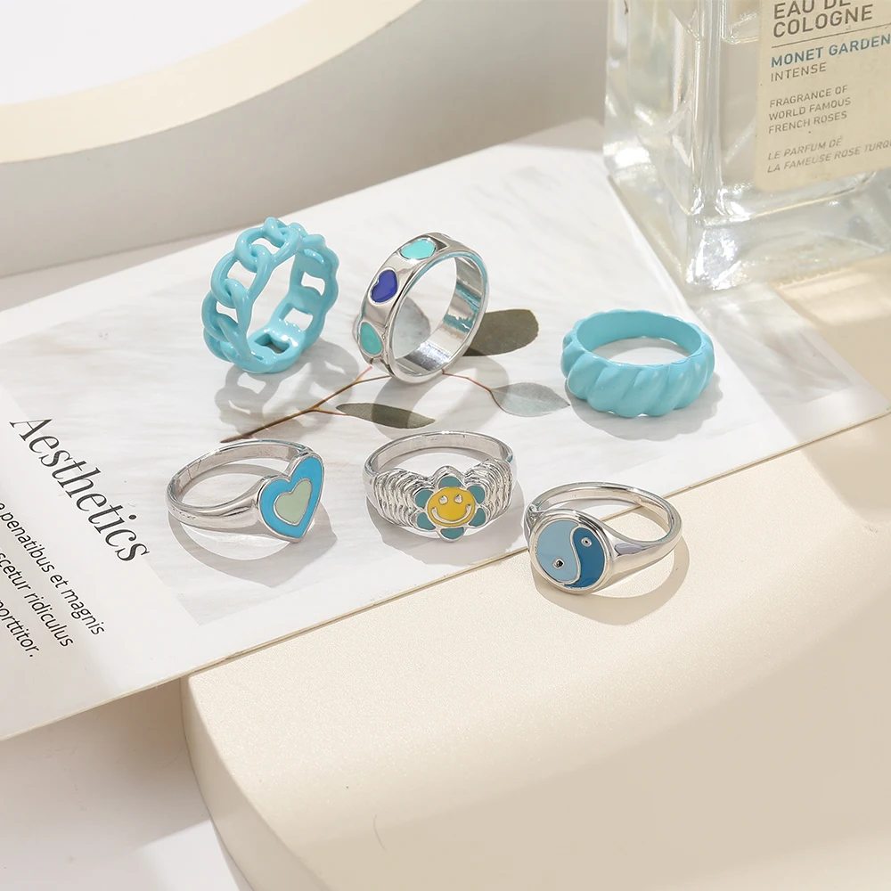 6 шт., женский набор колец в форме сердца, с металлическим покрытием