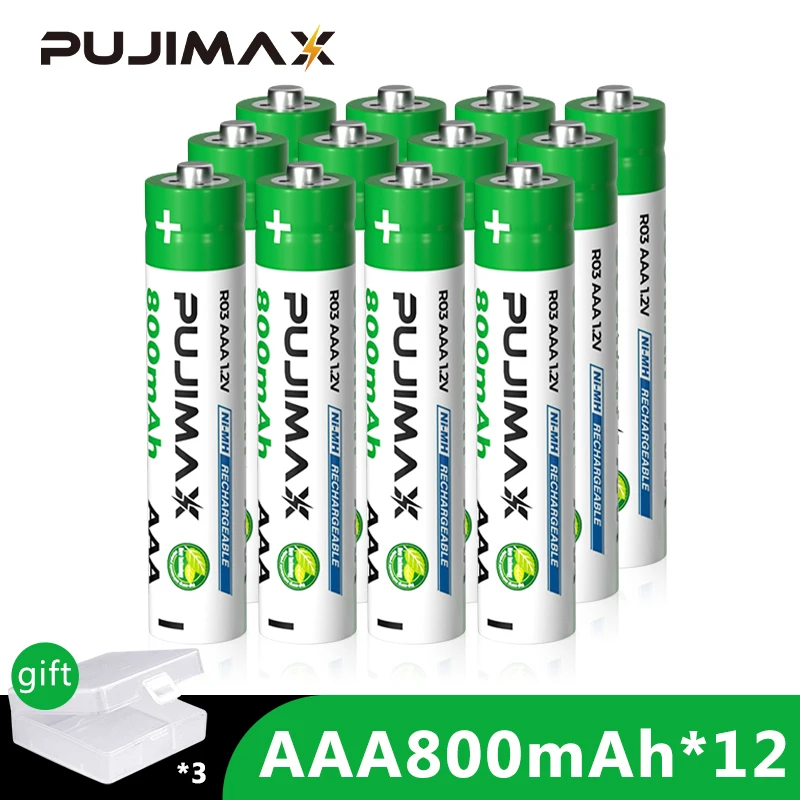 12 шт., перезаряжаемые батарейки AAA 1,2 в 800 мАч