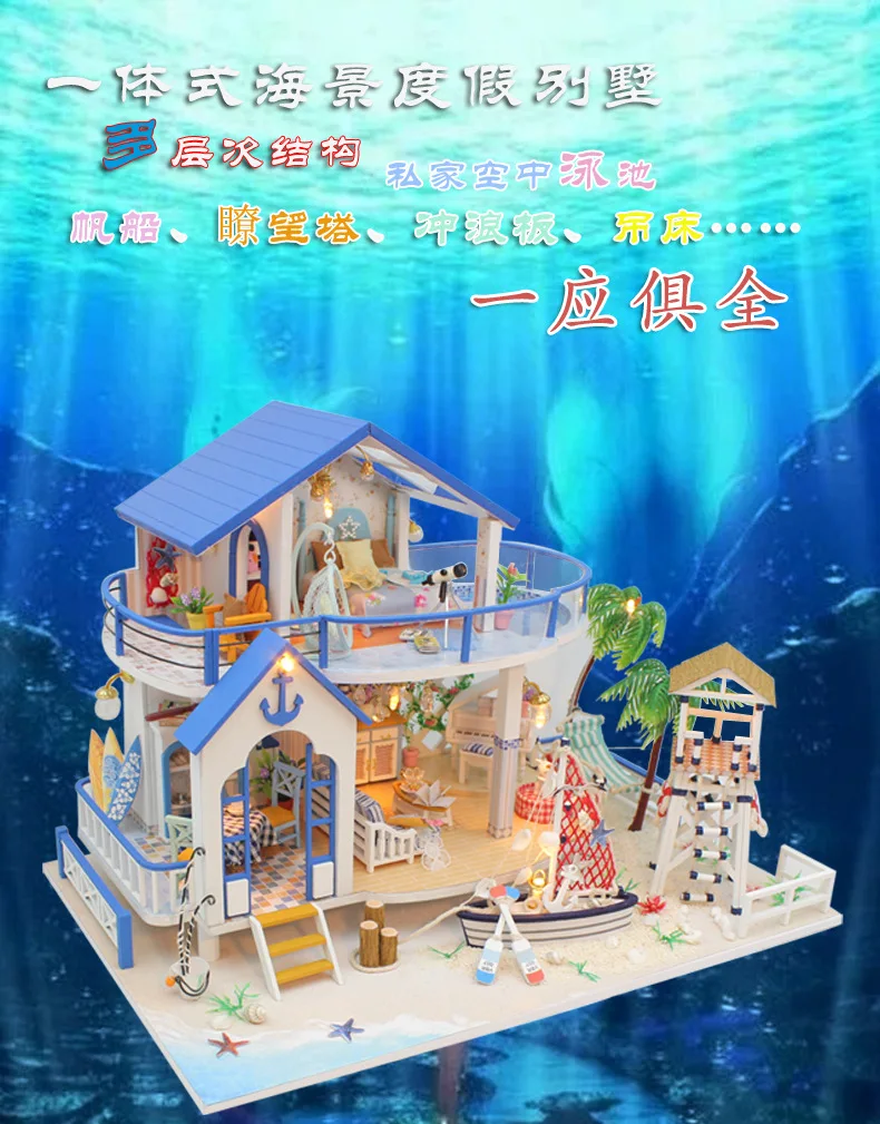 Набор для сборки Легенда о синем океане, деревянный Миниатюрный Кукольный домик, мебель для детей, подарки, 3D деревянное ремесло, кукольный домик