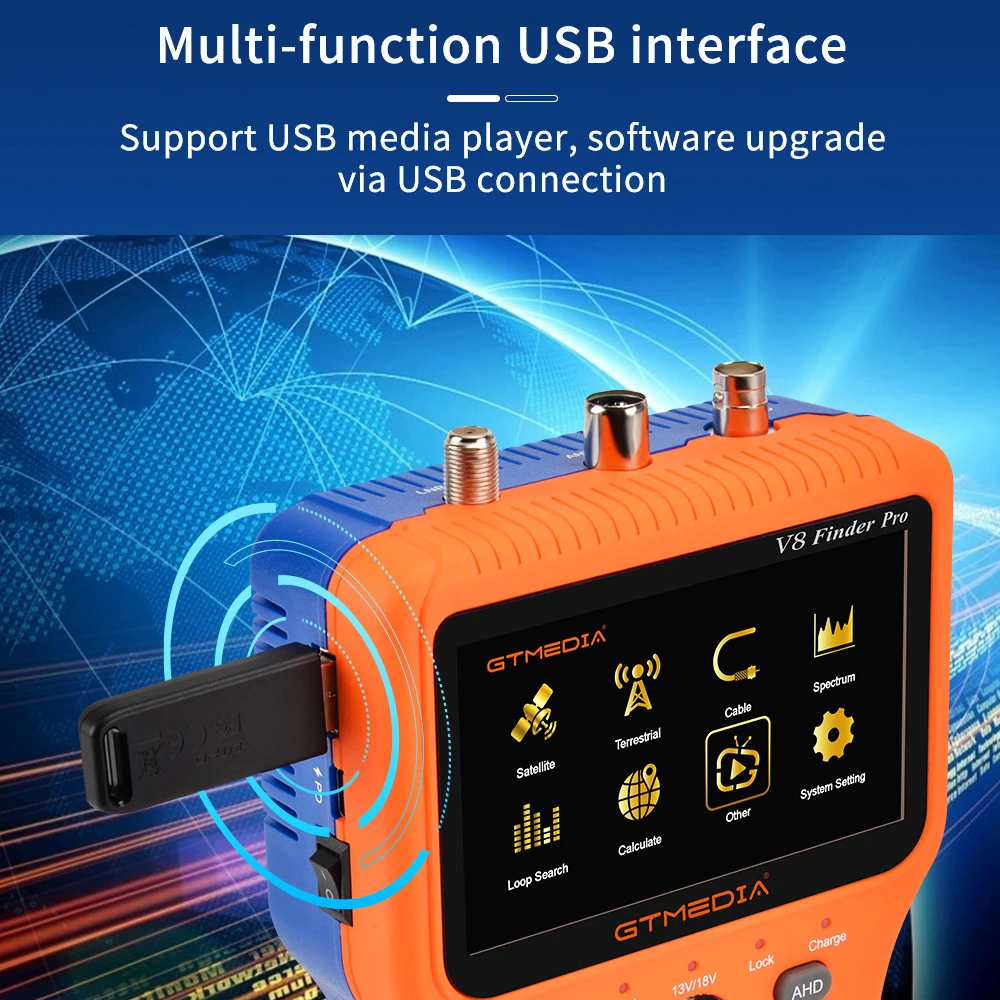 Новинка V8 Finder Pro, устройство для обнаружения спутникового сигнала, устройство для обнаружения света, S2ST2TC H.265 USB WiFi 2,4G, автоматическое расчет угла AZ,EL