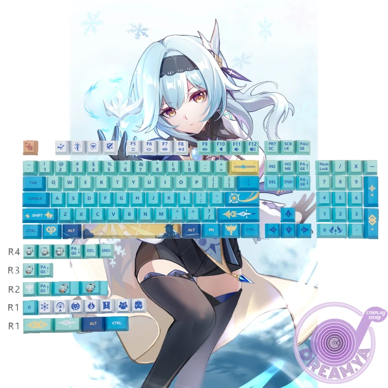 Механическая клавиатура для косплея по мотивам игры Genshin Impact Eula, колпачки клавиш для 87104108 клавиш, модная крутая клавиатура, коллекционный подарок