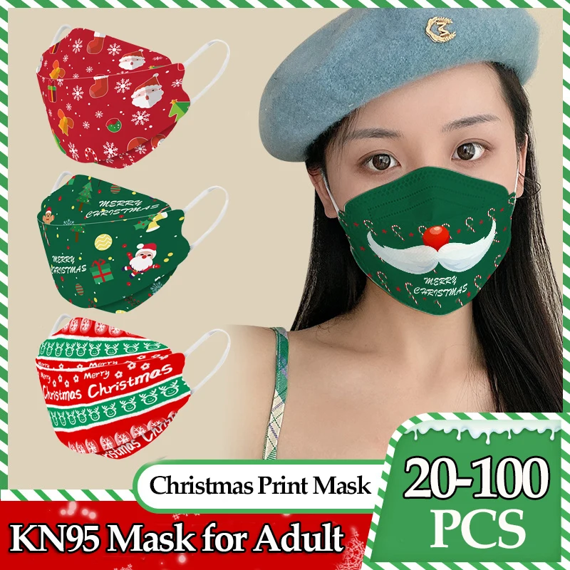 Рождественская маска KN95 для взрослых, 4-слойная Защитная дышащая ...