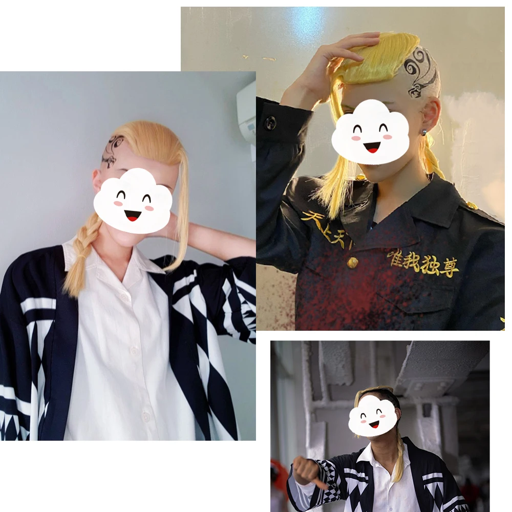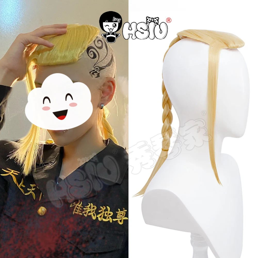 Парик для косплея Токийский рестигс, термостойкие синтетические волосы с золотой косичкой HSIU Ryuguuji Ken, шапочка