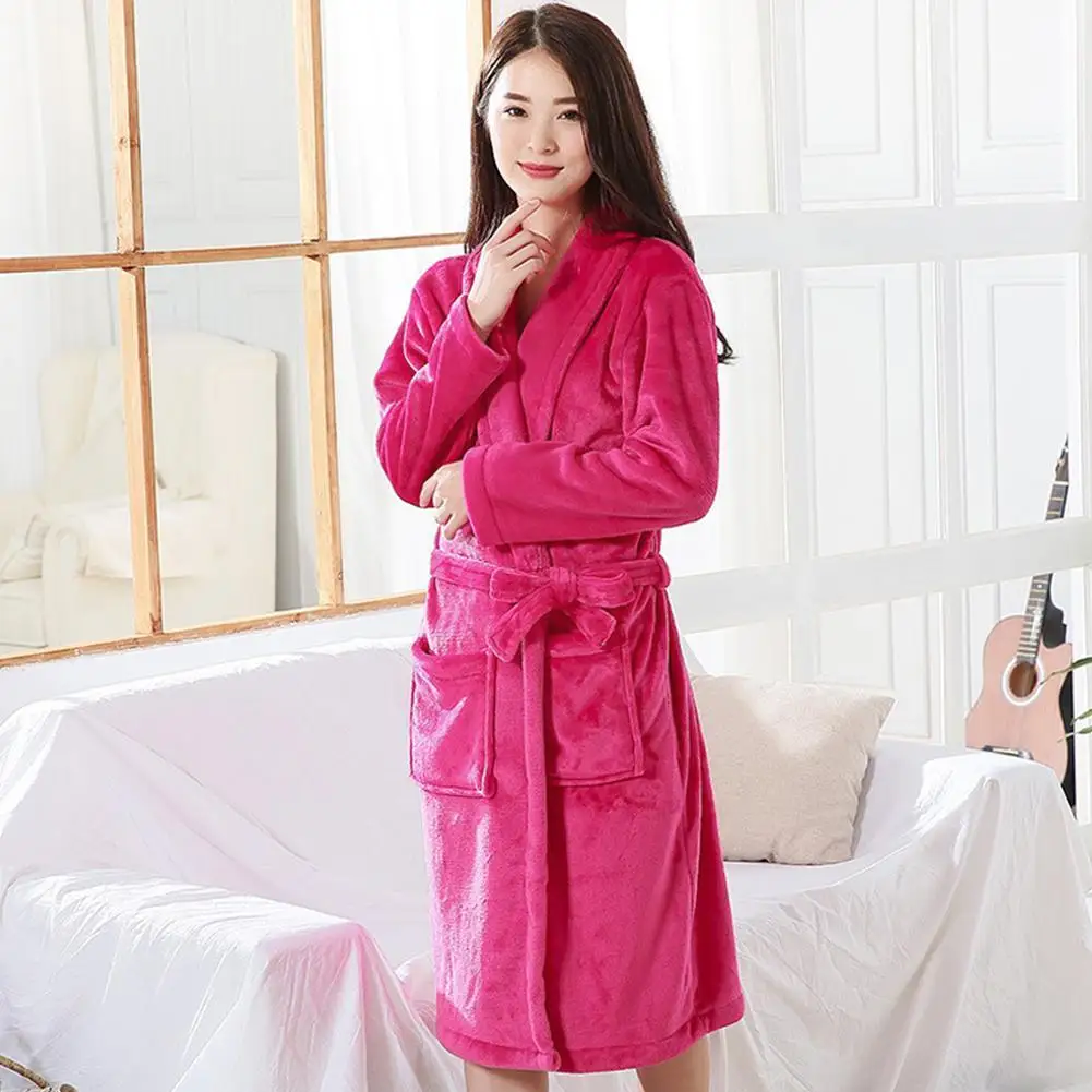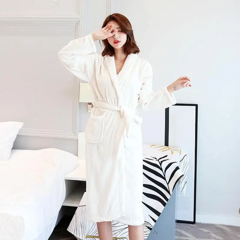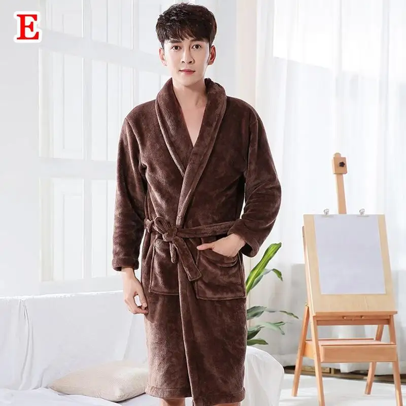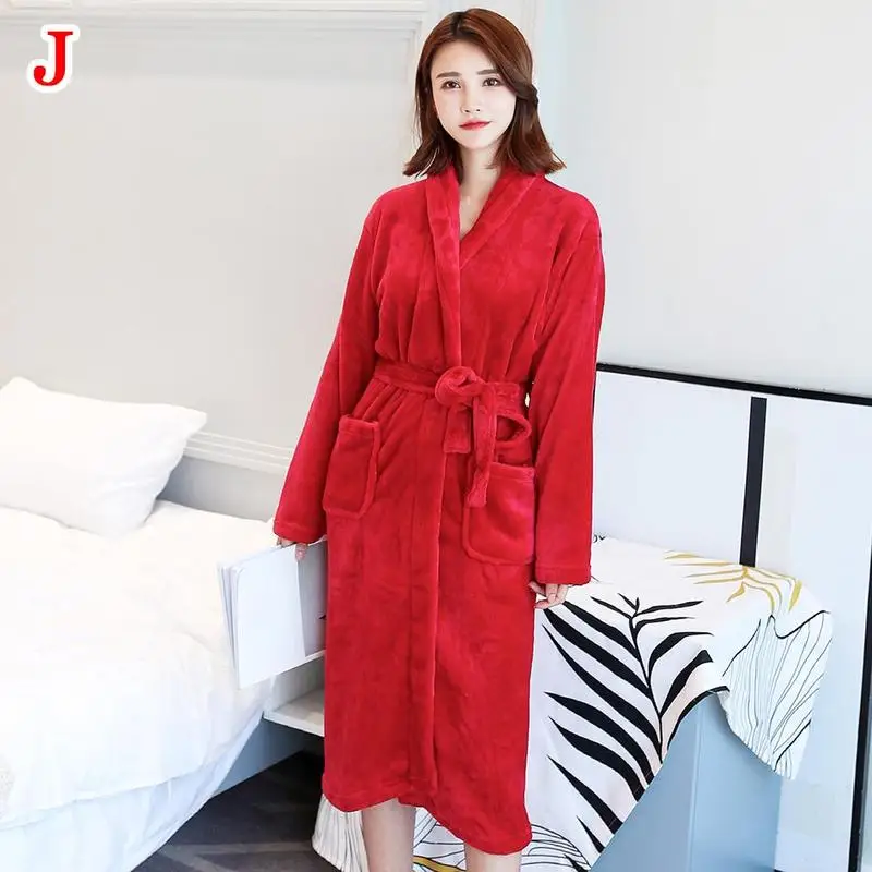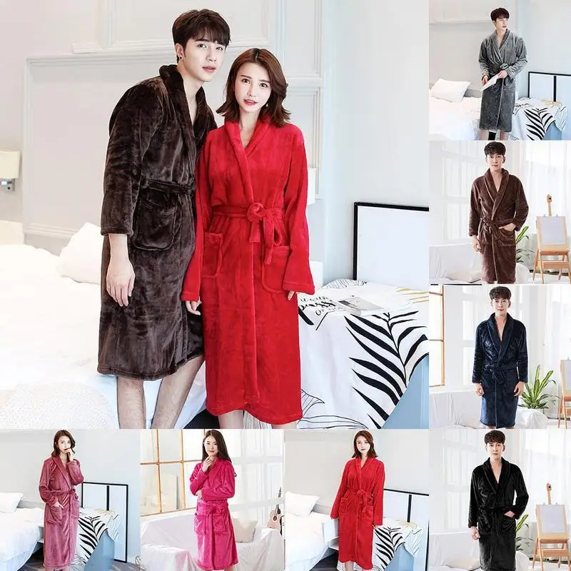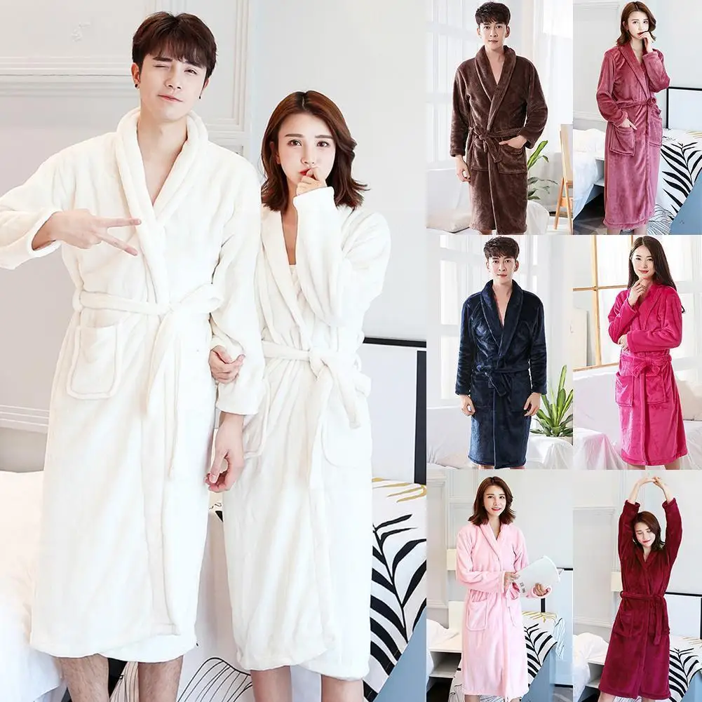 Фланелевая зимняя ночная рубашка для пар, банный халат, утепленная длинная мужская женская пижама и рукав средней длины V2E0