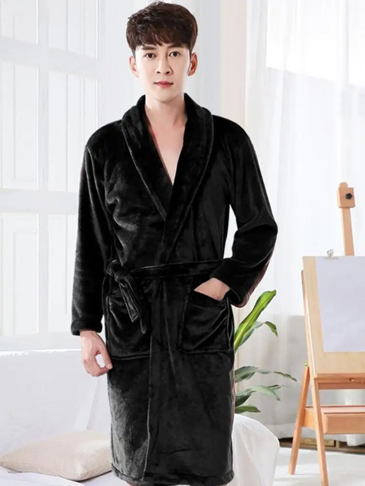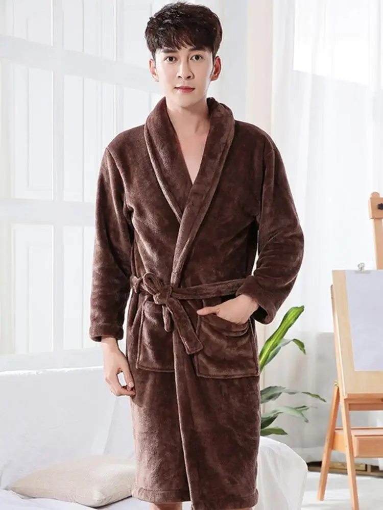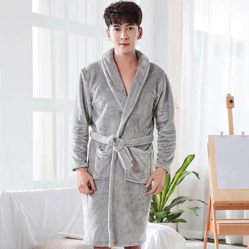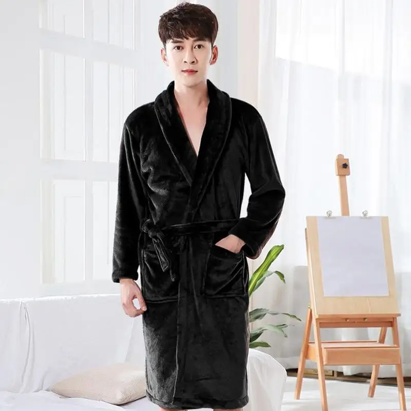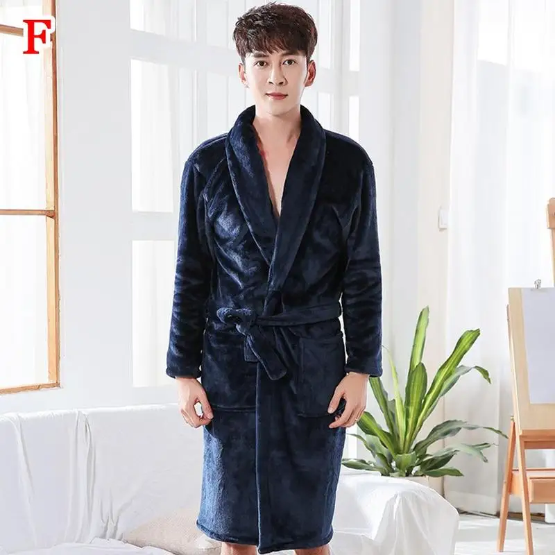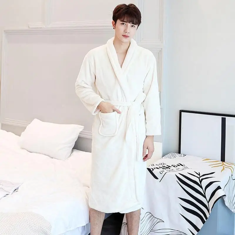 Фланелевая зимняя ночная рубашка для пар, банный халат, утепленная длинная мужская женская пижама и рукав средней длины V2E0
