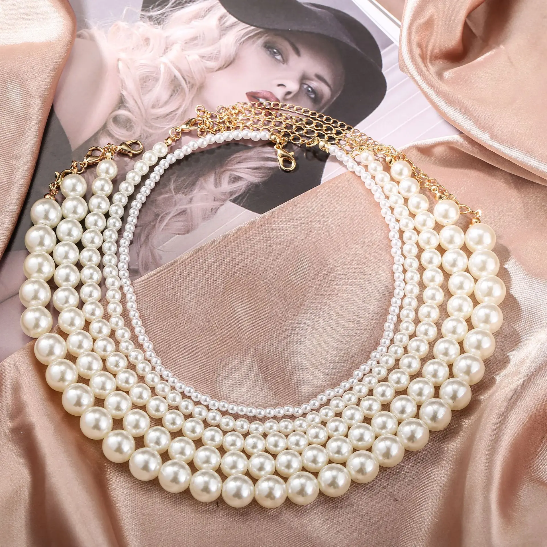 Женское Ожерелье с жемчугом, простые украшения в стиле ретро, ожерелье разных размеров для девушек