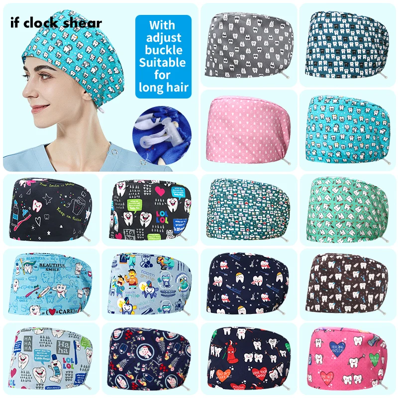 Шапка для медсестры с цветочным узором, регулируемая шапка с разным...