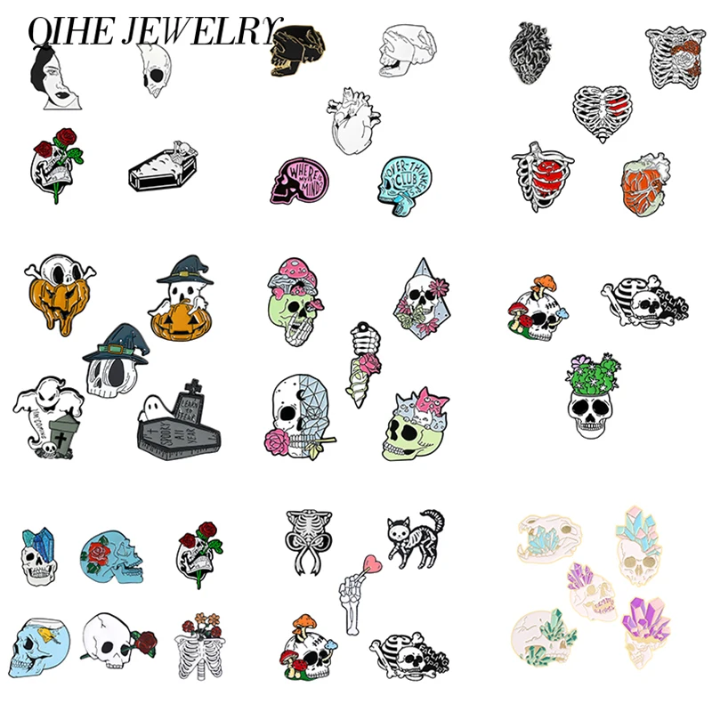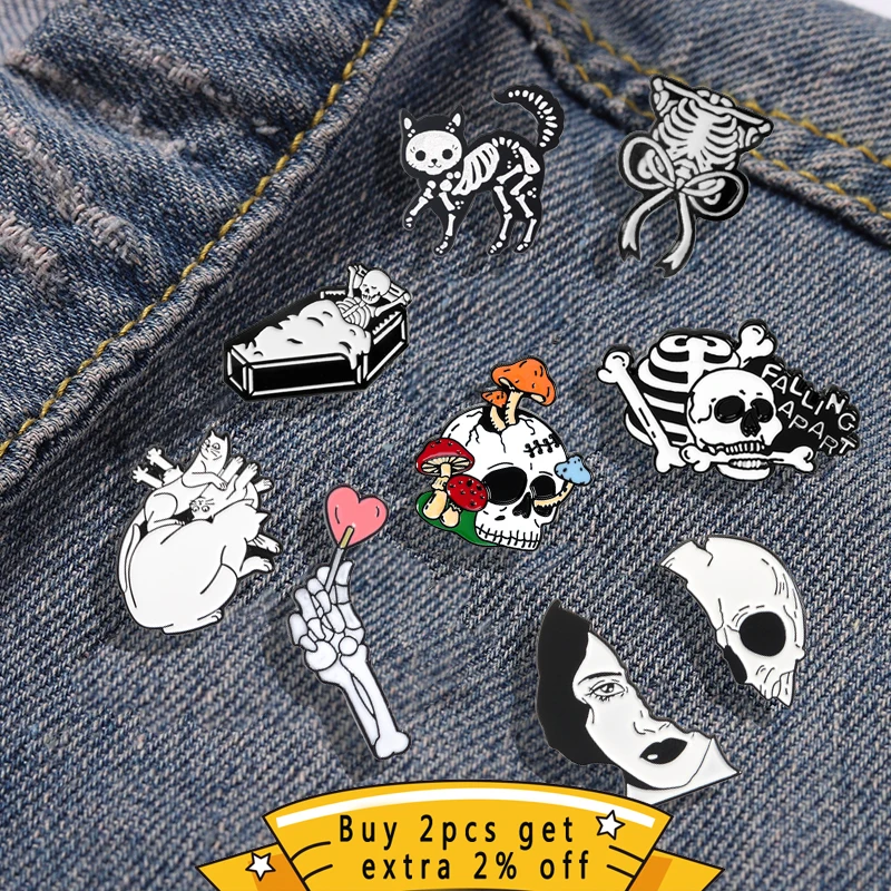Хэллоуин Скелет Панк эмалевая булавка гриб призрак тыква кактус сердце кот брошь на лацкан Одежда значок для друга подарок оптовая продажа