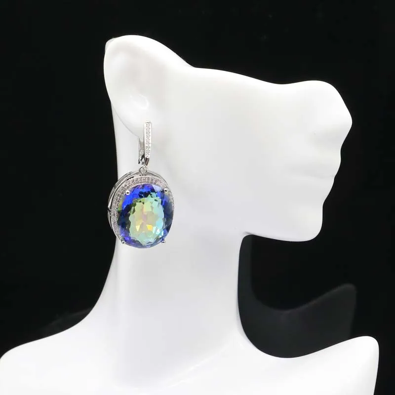 40x21 мм Большой овальный комплект ювелирных изделий 17,5 г, сменяющие цвет султанит Александрит топаз, серебряные серьги, подвеска, привлекающие внимание