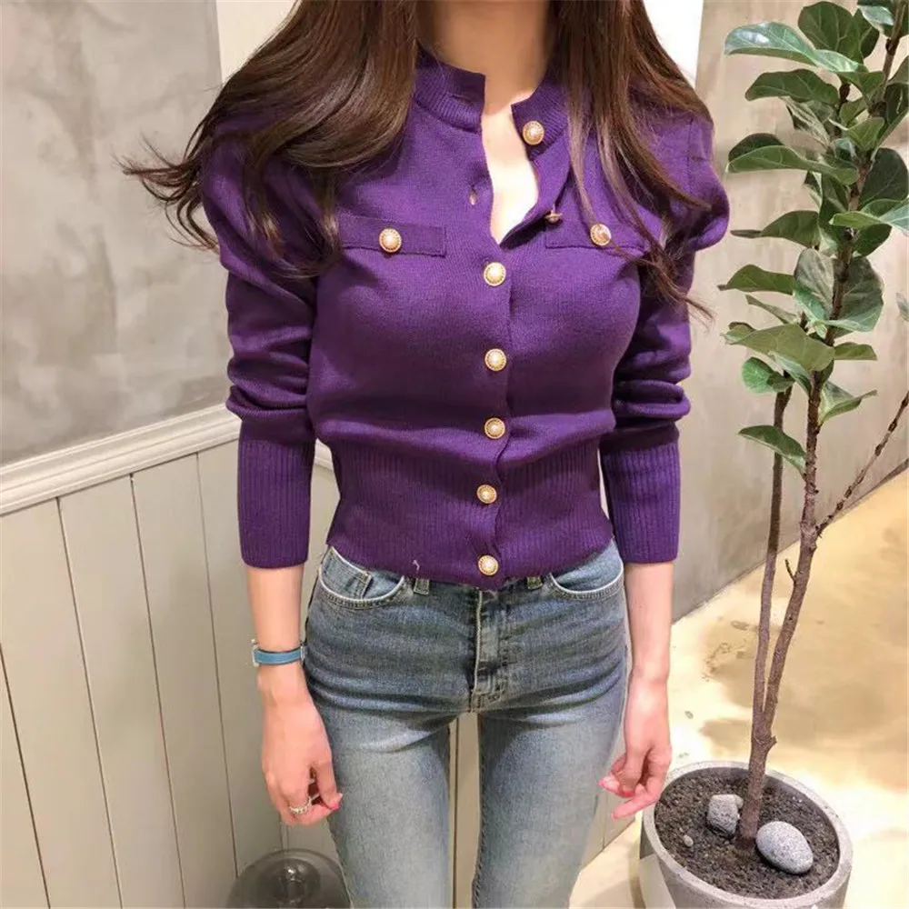 Женский кардиган, свитер, весеннее вязаное короткое пальто с длинным рукавом, повседневный однобортный корейский приталенный модный шикарный женский топ