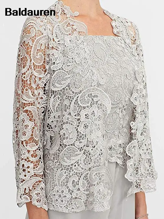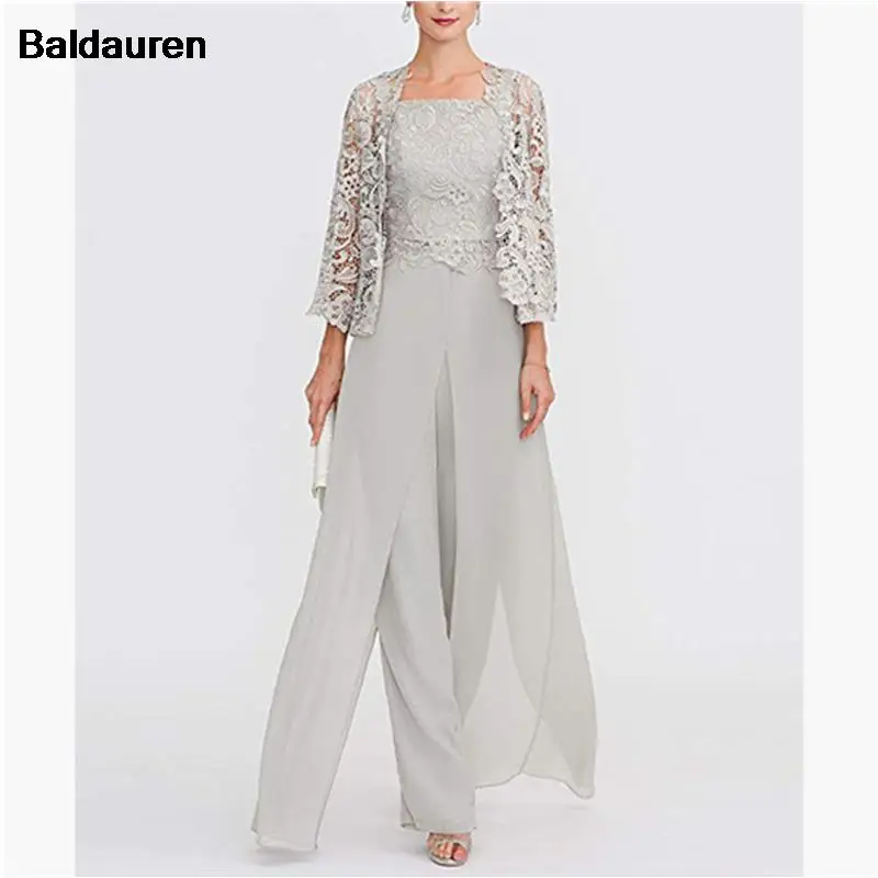 Элегантный серый кружевной брючный костюм для матери невесты женское шифоновое официальное вечернее платье для матери Длинные платья для мамы