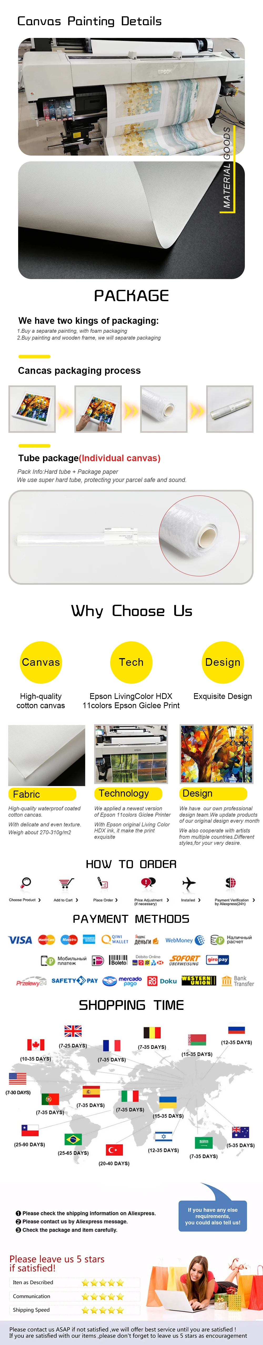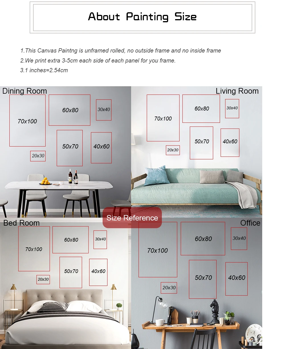 Что-то важное для наших клиентов:1,3-5 см дополнительной белой каймой для рамы каждой панели. Размер измерения вручную, Размеры товара могут отличаться на 1-2 см вследствие измерений вручную.2. Чтобы сохранить стоимость доставки и избежать повреждения рамы при транспортировке, без коврика, без внутренней рамы, без внешней рамы, только холщовая свернутая.3. Как эффекты освещения, цвет объектов может немного отличаться от изображения.4. Этот холст отличного качества без внутренней и внешней рамки, чтобы сохранить стоимость доставки, но этот размер является обычным размером фоторамки, и вы можете легко получить готовую рамку.5. Картина не ручная работа, она печатается на машинах.6. Если вам нужны индивидуальные размеры, пожалуйста, свяжитесь с нами.