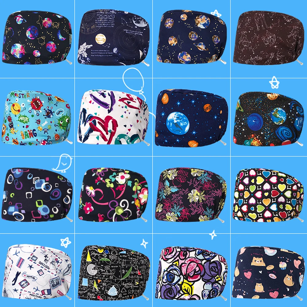 Шапочка унисекс для мужчин, женщин, мужчин, врачей, медсестер, шапочка с принтом, медицинская хирургическая шапочка, аксессуары для медсестер, хирургическая шапочка из 100% хлопка, шапочка для операционной