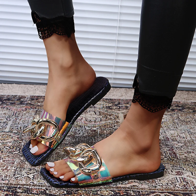 Rimocy 2021 летние женские, модные, с металлической цепочкой, шлепа...