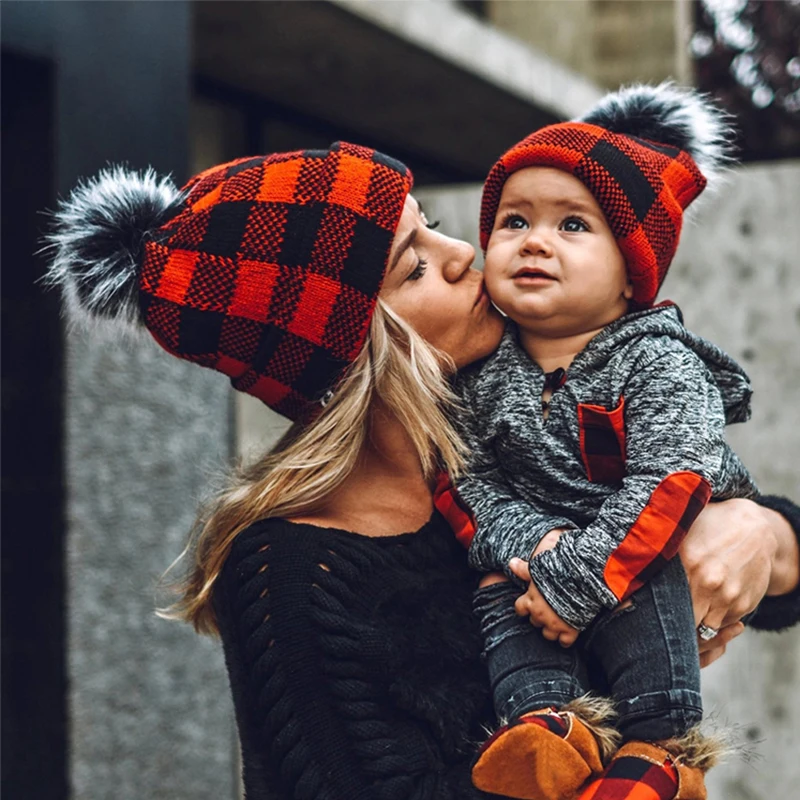 Вязаная шапка для маленьких девочек и мальчиков, мам, семейные Клет...