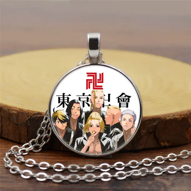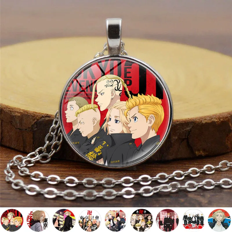 Ожерелье с японским аниме Токийский призрак для женщин, бижутерия для косплея, стеклянный кабошон с мультяшными персонажами, Массивное колье-цепочка