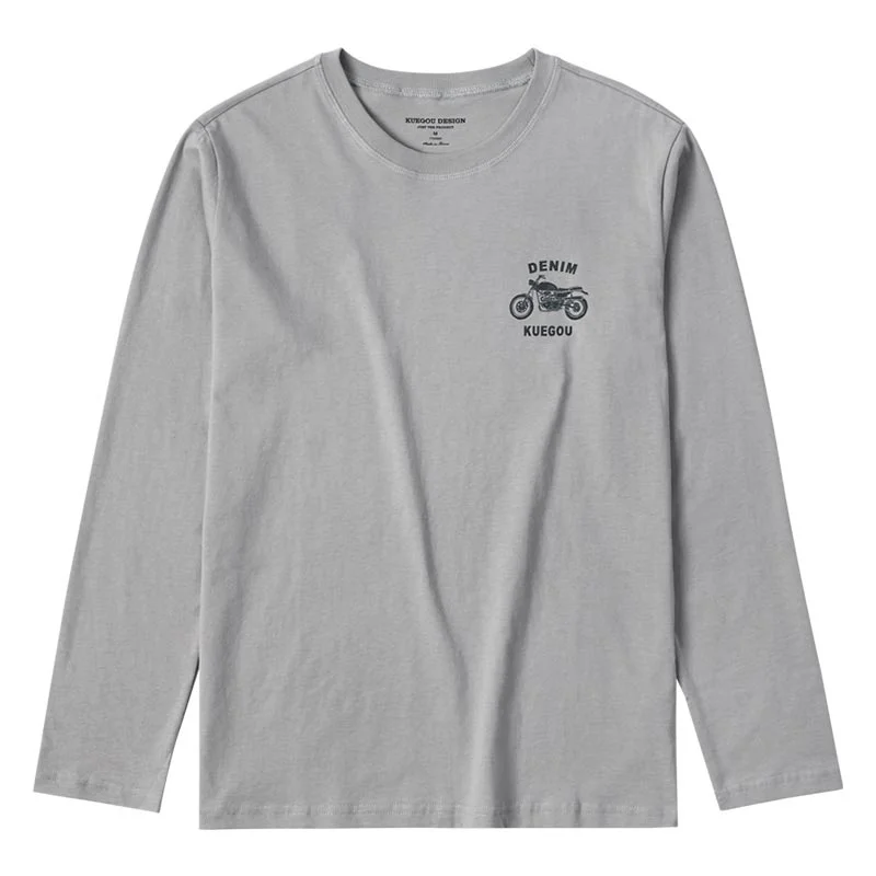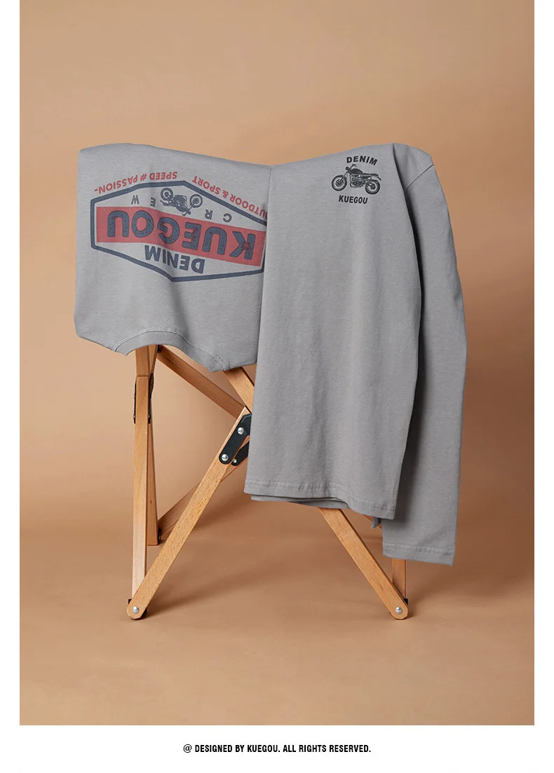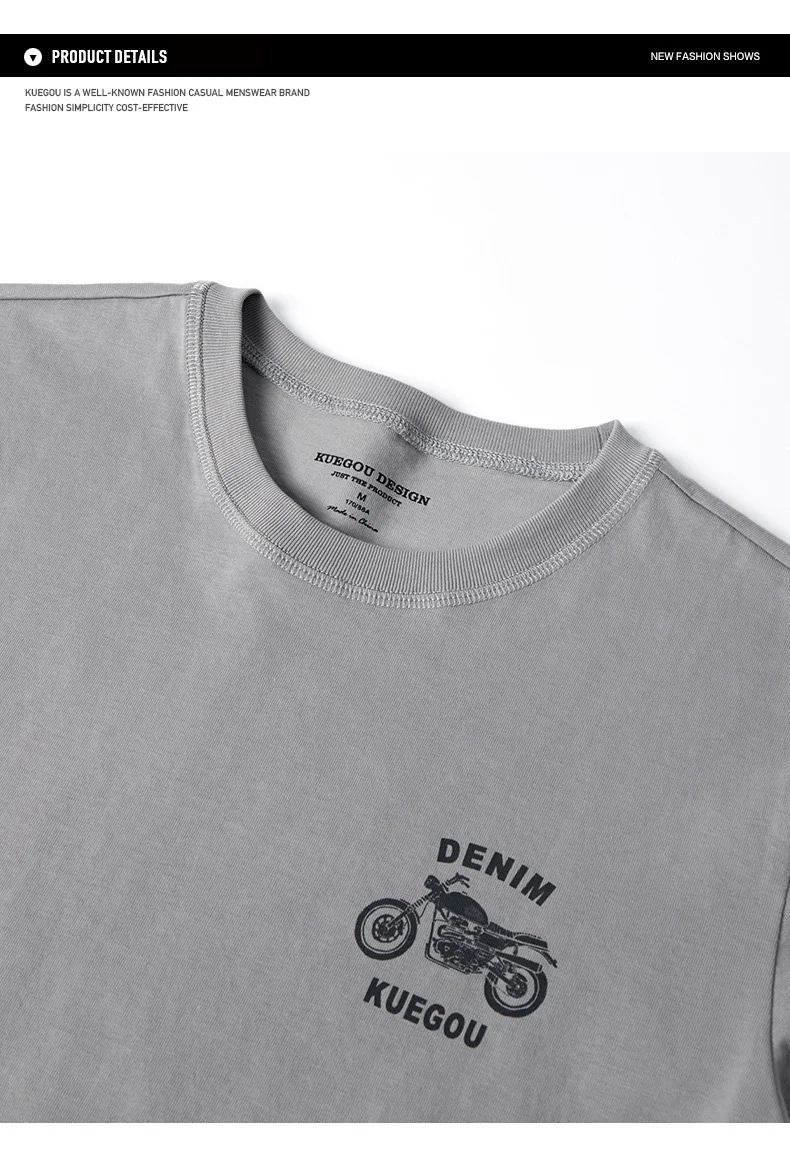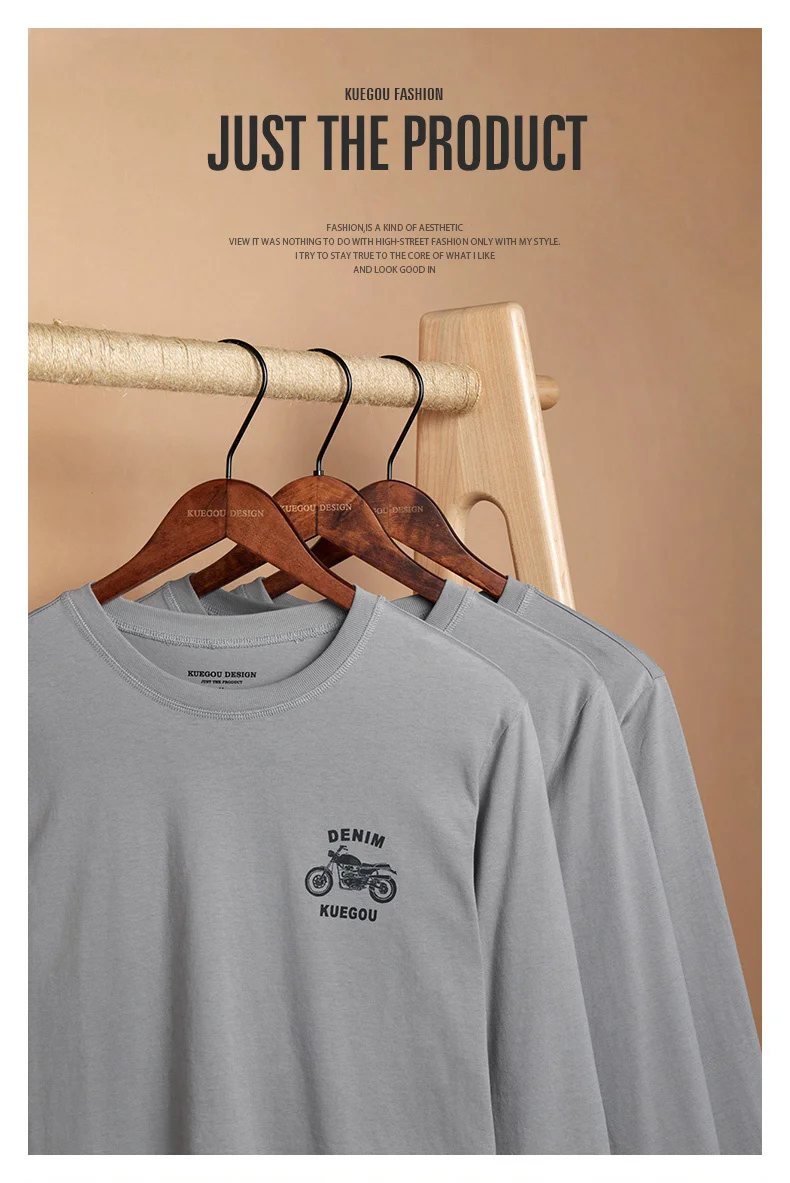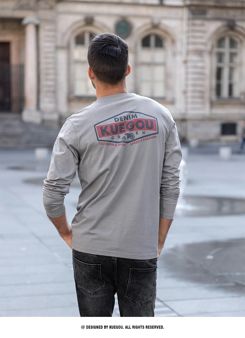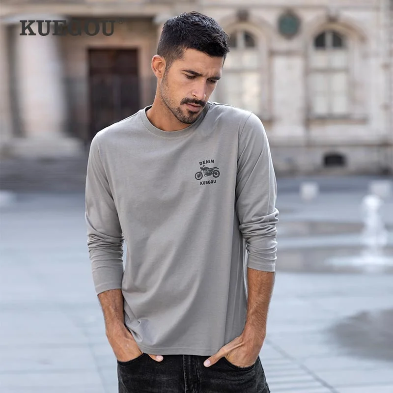 KUEGOU 2022, Весенняя серая футболка из 100% хлопка с принтом, мужская Тонкая футболка, брендовая футболка с длинными рукавами, Мужская одежда, футболки размера плюс, топы 60039