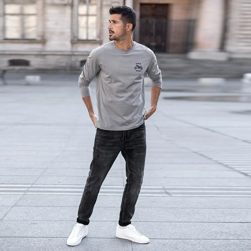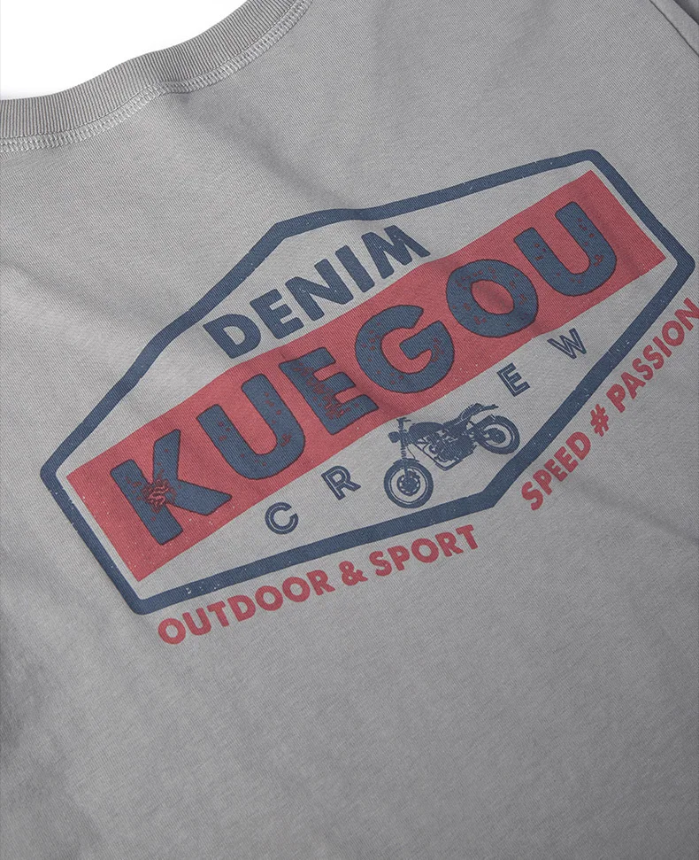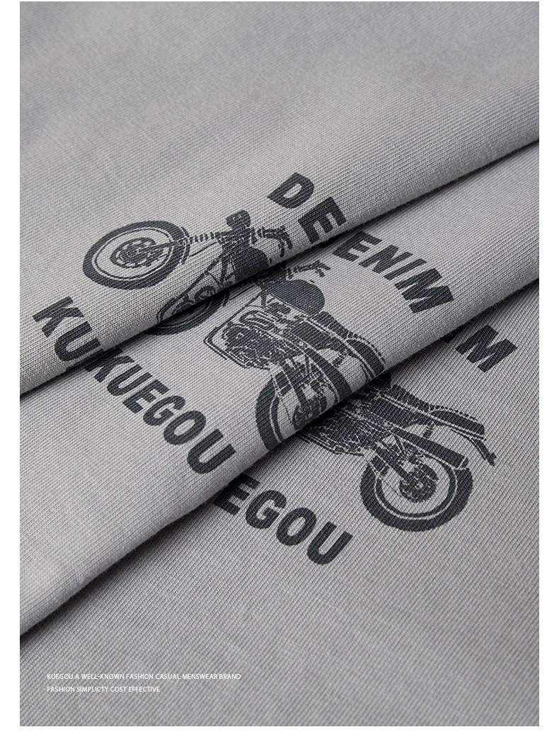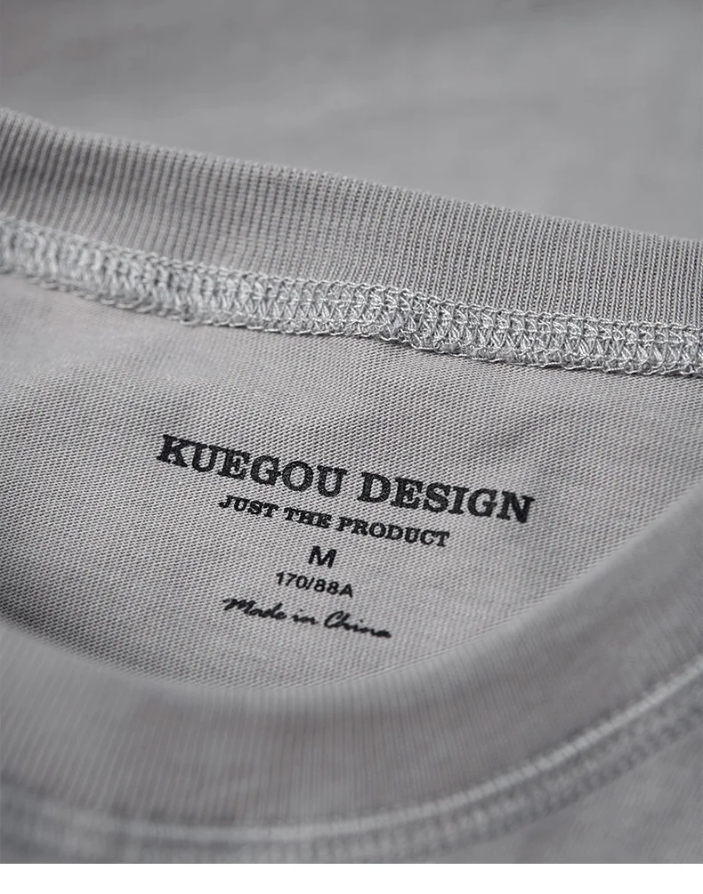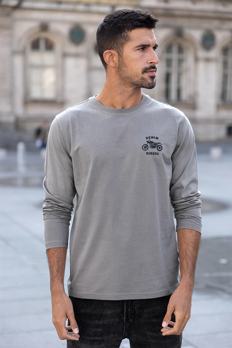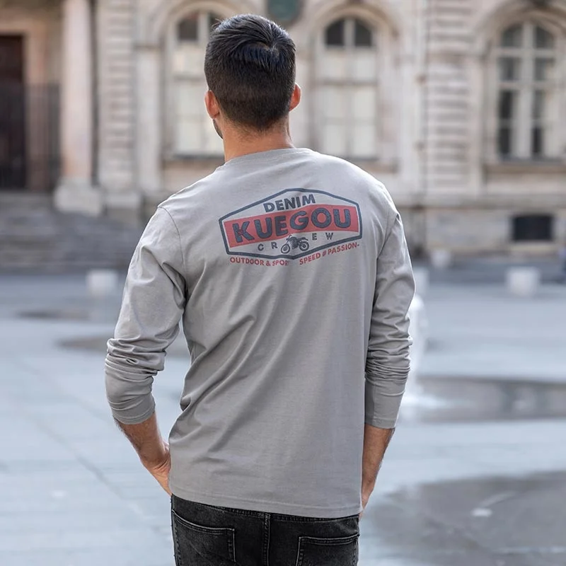 KUEGOU 2022, Весенняя серая футболка из 100% хлопка с принтом, мужская Тонкая футболка, брендовая футболка с длинными рукавами, Мужская одежда, футболки размера плюс, топы 60039