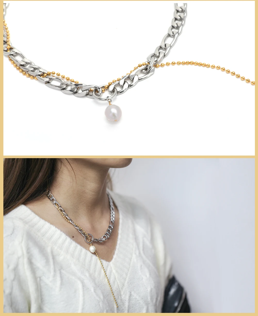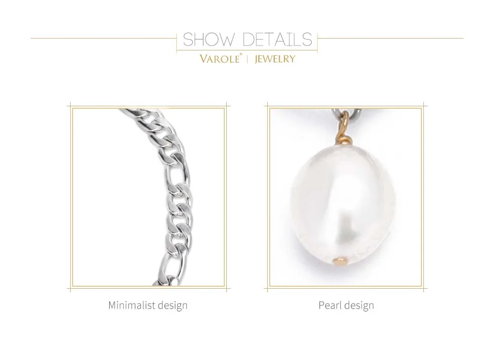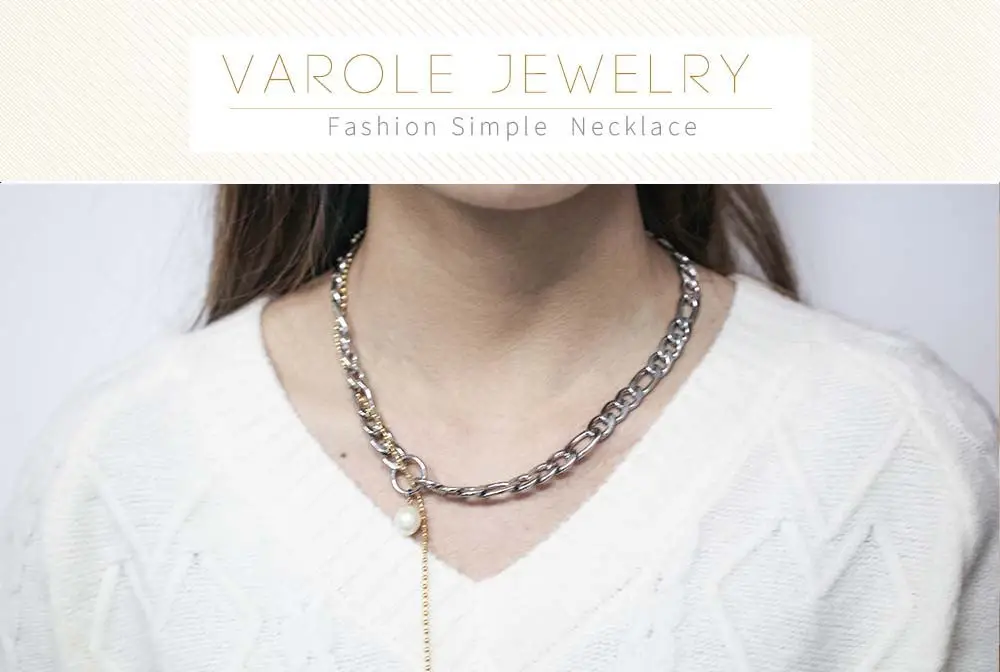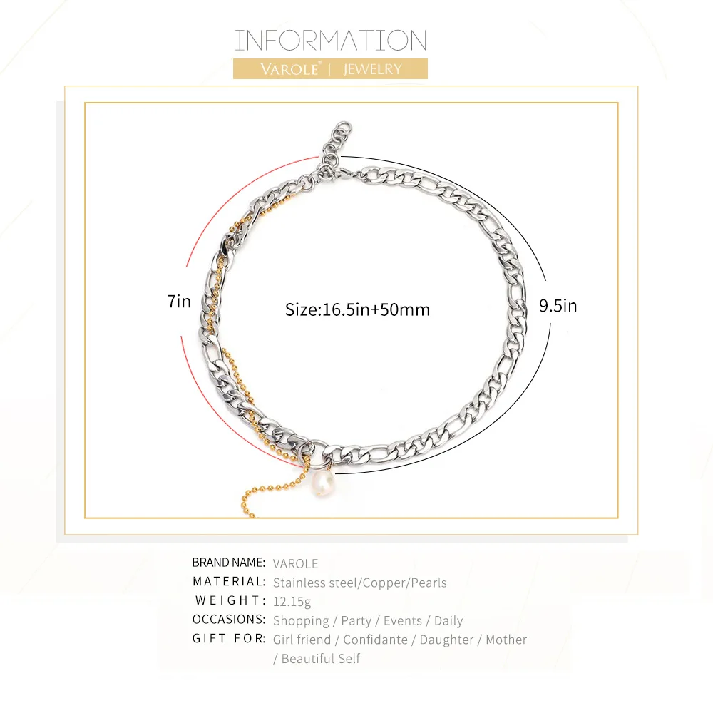 Женская ассиметричная цепочка VAROLE, ожерелье из панцирного плетения с простым натуральным жемчугом, ювелирное изделие для девушек, многослойный аксессуар для шеи в стиле рок