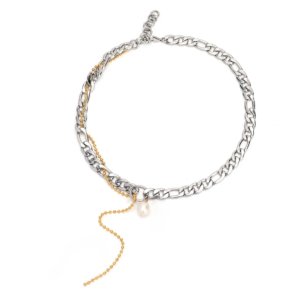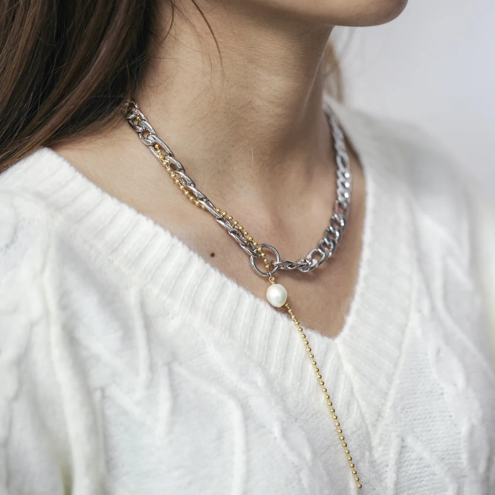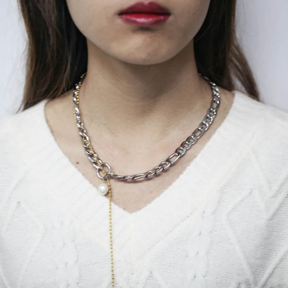 Женская ассиметричная цепочка VAROLE, ожерелье из панцирного плетения с простым натуральным жемчугом, ювелирное изделие для девушек, многослойный аксессуар для шеи в стиле рок
