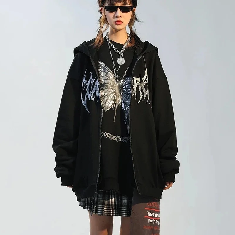 Женское худи в стиле хип-хоп Y2k, куртка на молнии с принтом бабочк...