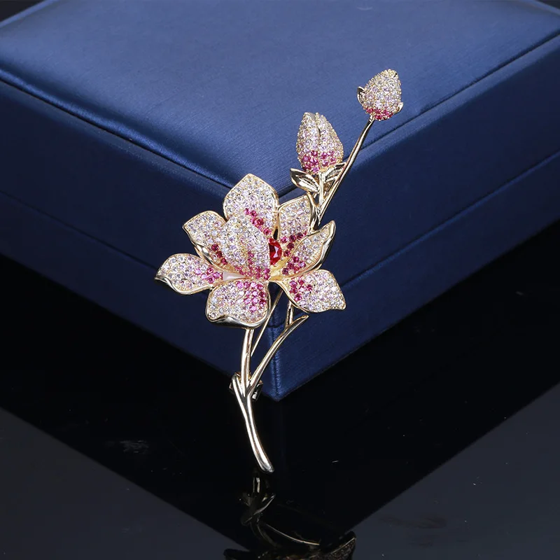 Новинка 2021, модная Элегантная Брошь Стразы в форме цветка для костюма, высококачественные Позолоченные металлические женские броши, булавки, ювелирные изделия