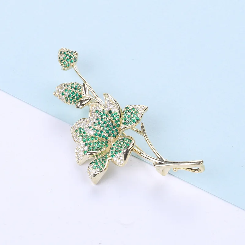 Модная роскошная брошь в форме букета из блестящего золота с циркон...