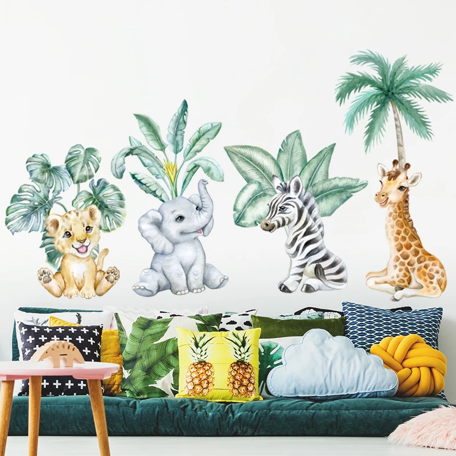 Мультяшные дикие животные Лев Жираф акварельные детские настенные н...