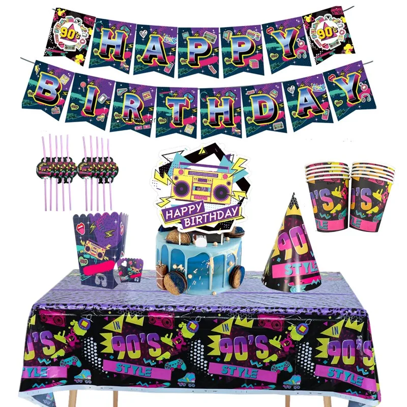 Вечерние украшения в стиле хип-хоп, 90s, вечерние одноразовые тарелки, чашки для дня рождения, покрытие для стола, принадлежности для дискотек