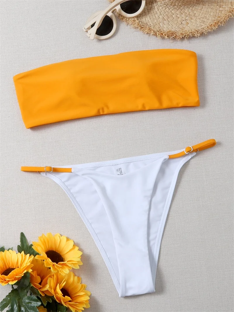 Раздельные бикини, сексуальный купальник-бандо, Женский раздельный купальник, оранжевый цвет, ринга, Бразильское бикини, пляжная одежда