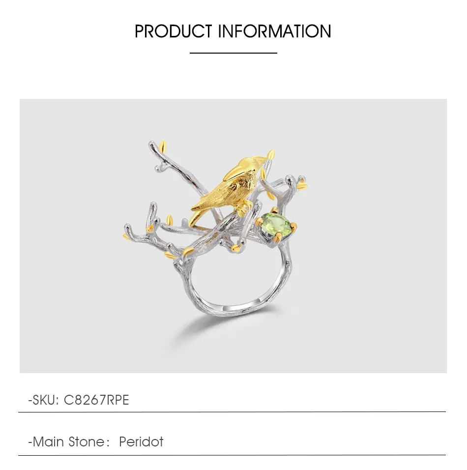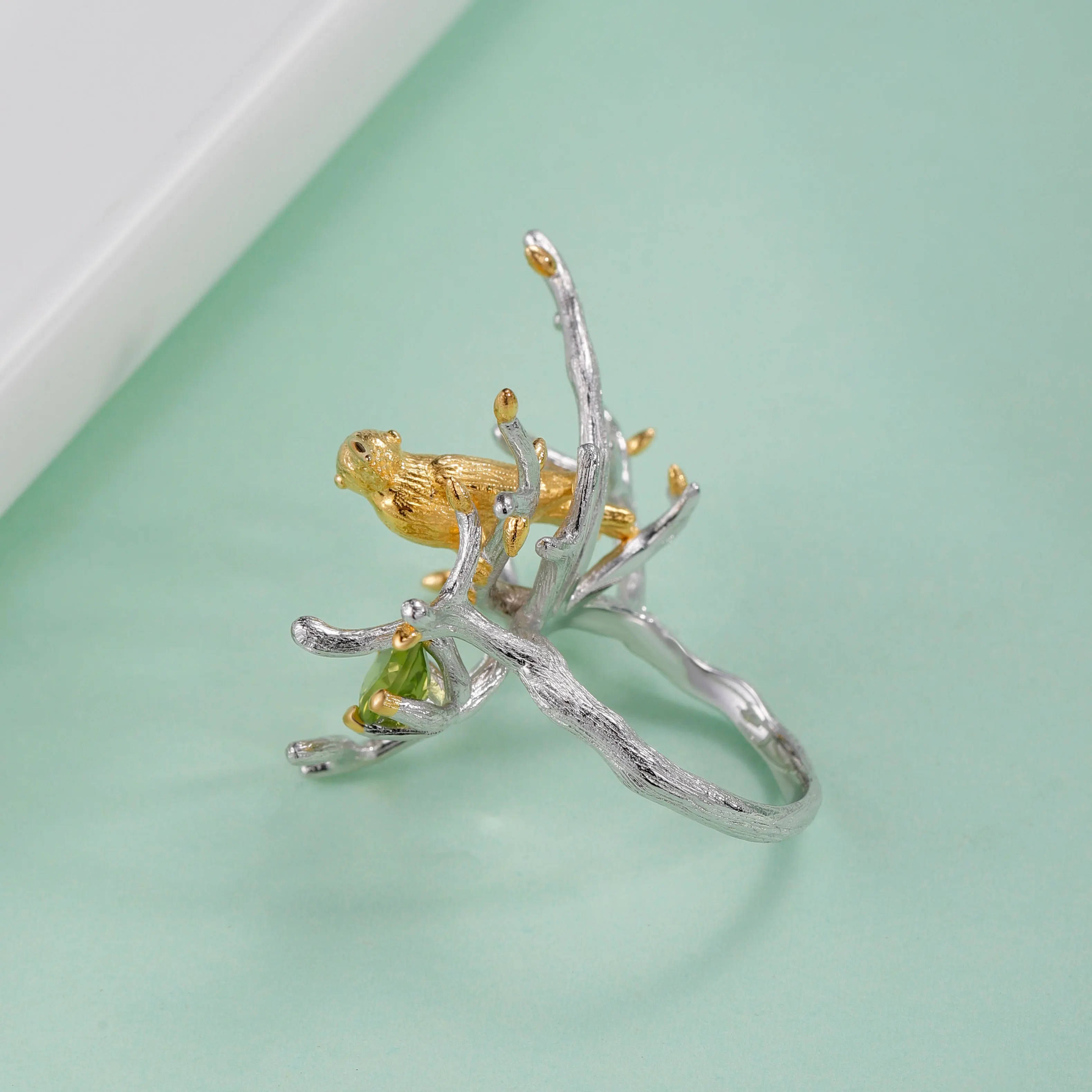 Женское кольцо из серебра 925 пробы, с натуральным Перидотом