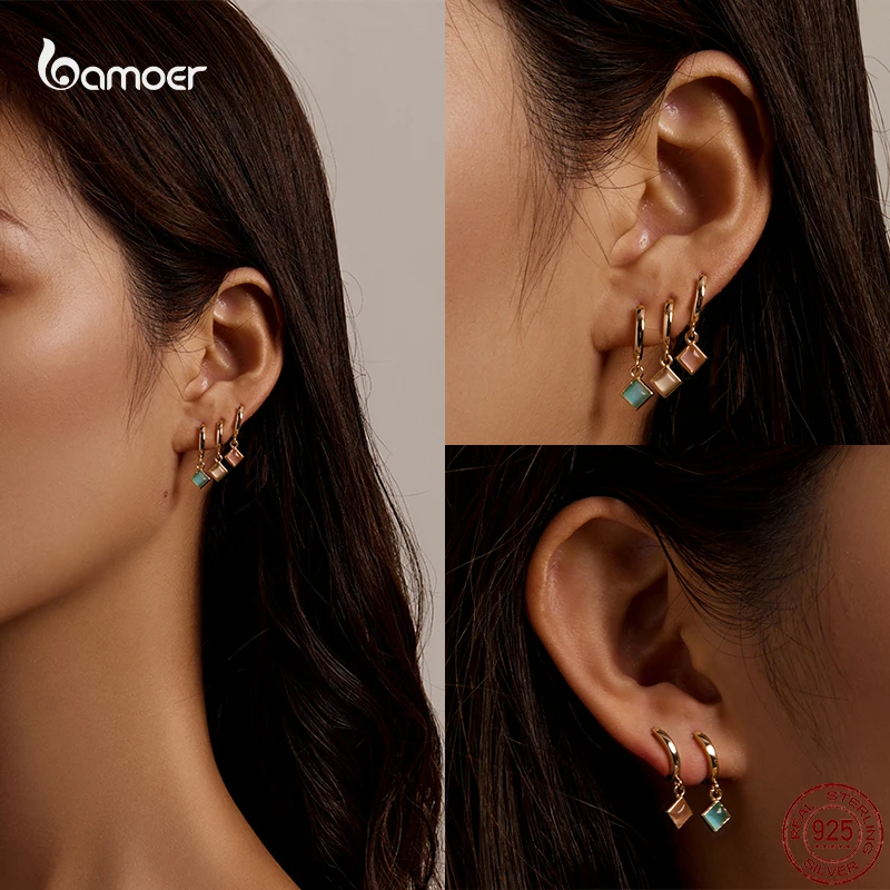 Женские квадратные ювелирные украшения Bamoer, из стерлингового сер...
