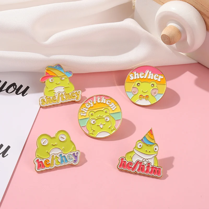 Мультяшные эмалевые булавки с зеленой лягушкой, персональные Броши с местом для третьих людей, Детские значки, украшение для одежды, булавки для лацканов, подарок, оптовая продажа