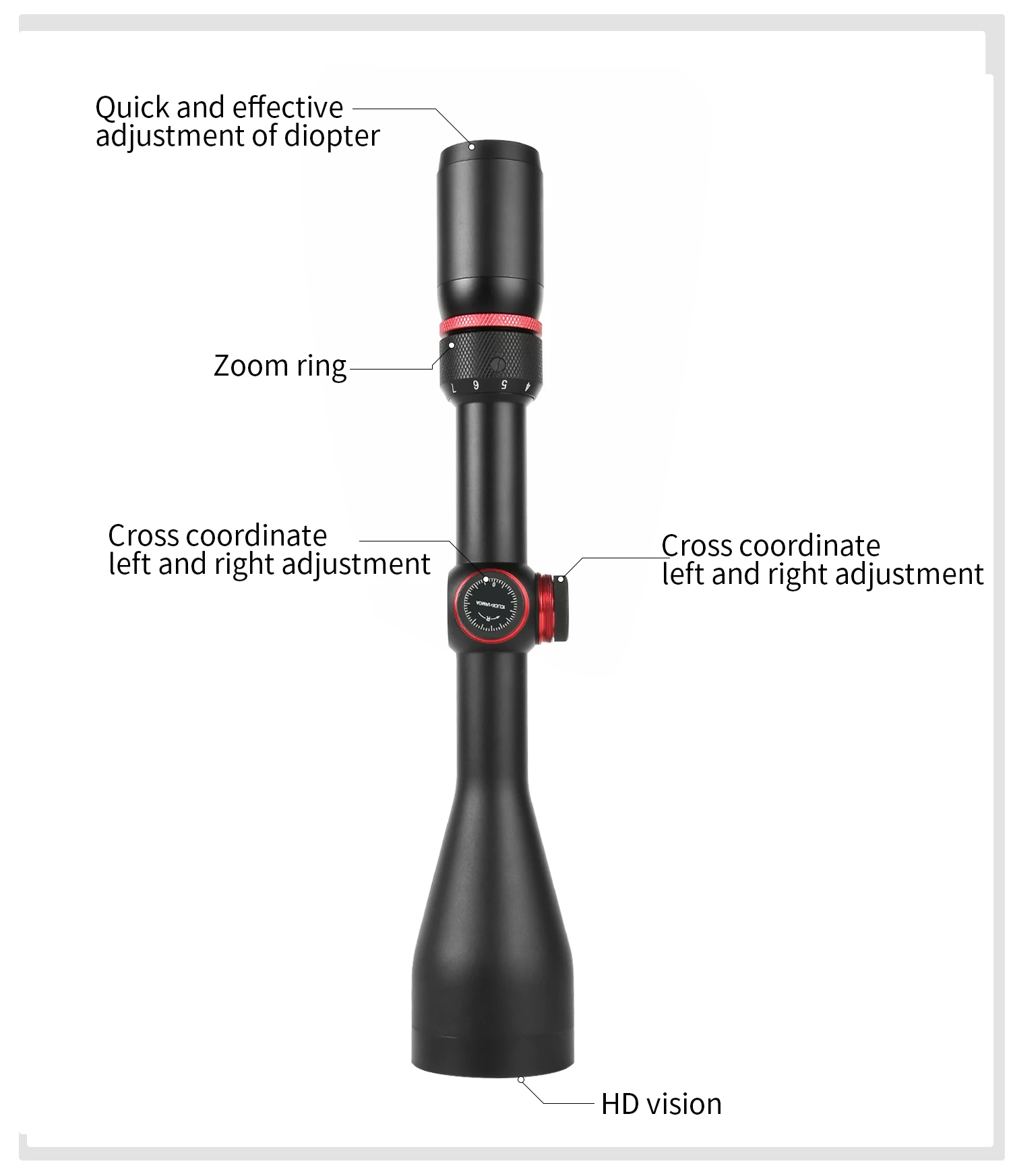 1. Водонепроницаемый, ударопрочный, противотуманный2 .. все полностью Многослойные линзы3. Широкий угол4.windage/elevation с нулевой блокировкой и нулевой сбросом5. Легкий, Быстрая Скорость фокусировки, небольшой Параллакс, супер большое видение6. Ветровая сетка, с тонкой поверхностью обзора, с большим видением, Быстрая Скорость фокусировки, подходит для CQB