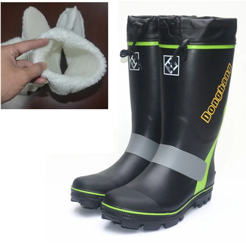 Мужские резиновые сапоги с высоким берцем, нескользящая Уличная обувь для рыбалки, теплые зимние Бархатные сноубутсы, большой размер 38-45