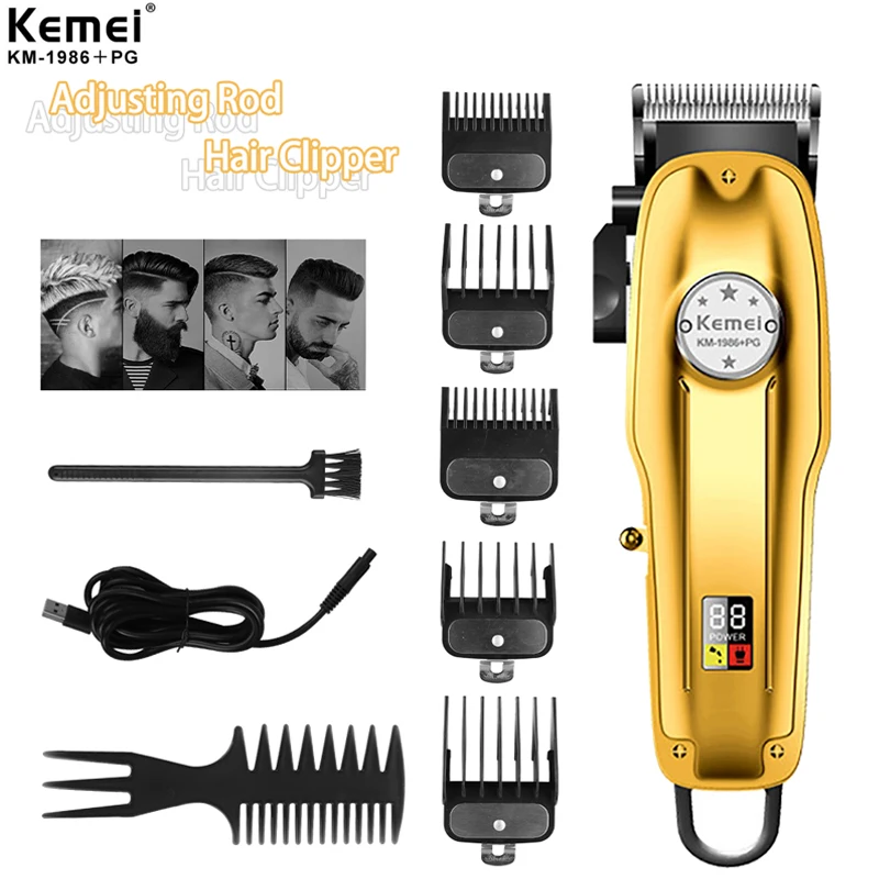 Профессиональная машинка для стрижки волос Kemei со светодиодным индикатором жидкокристаллических кристаллов и цифровым дисплеем, Беспроводная электрическая машинка для стрижки волос в металлическом корпусе