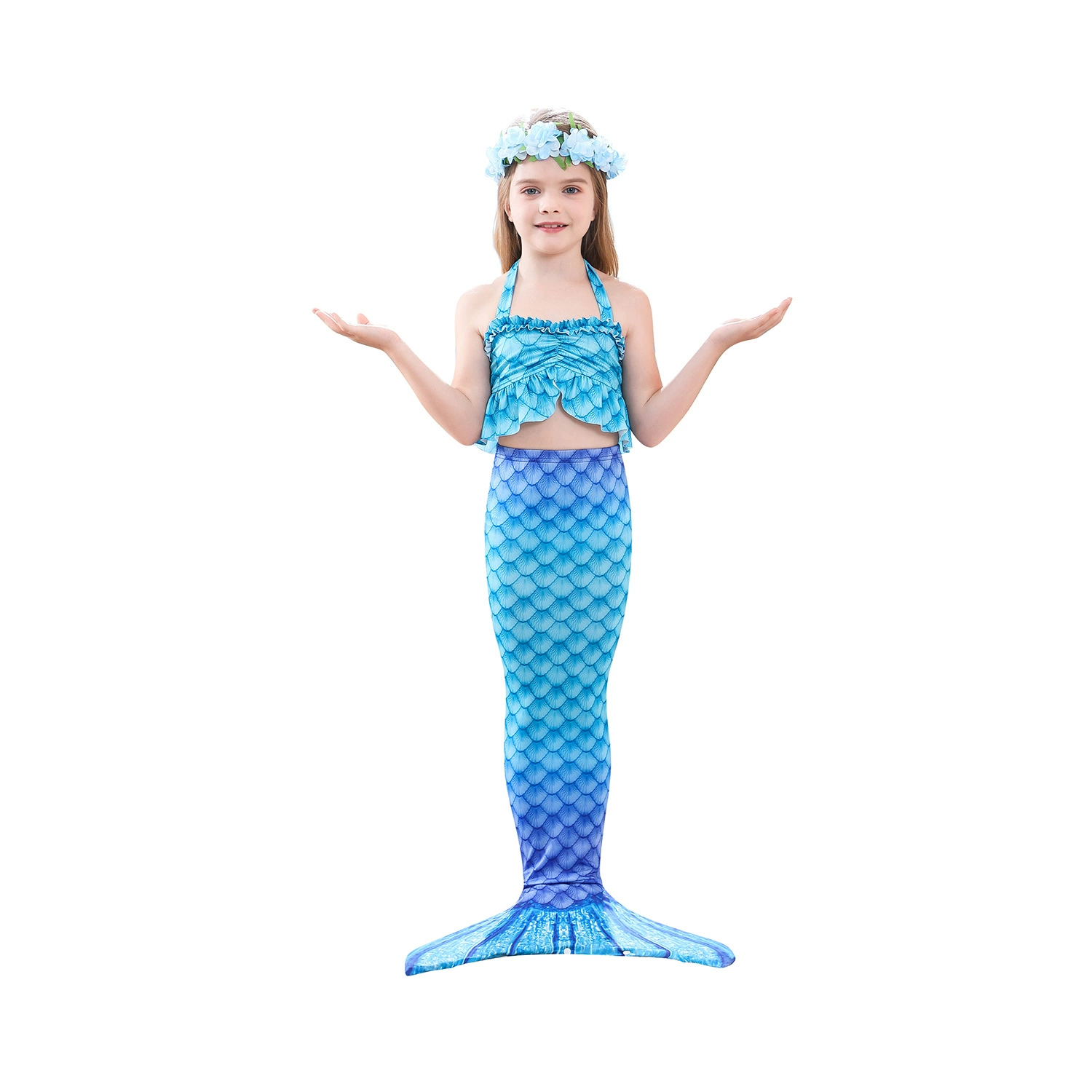 5 шт.:1 * юбка с хвостом русалки + 1 * бюстгальтер + 1 * шорты + 1 * гирлянда + 1 * ожерелье